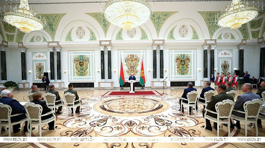 Праздничной дате в рабочем графике Александра Лукашенко было посвящено сразу два мероприятия. Накануне, 16 сентября, глава государства вручил государственные награды заслуженным представителям различных сфер. Это стало уже традицией — приурочивать награждение к знаковым для страны праздникам. Это символично продолжает эстафету поколений тех, кто отдает всего себя на благо страны.
