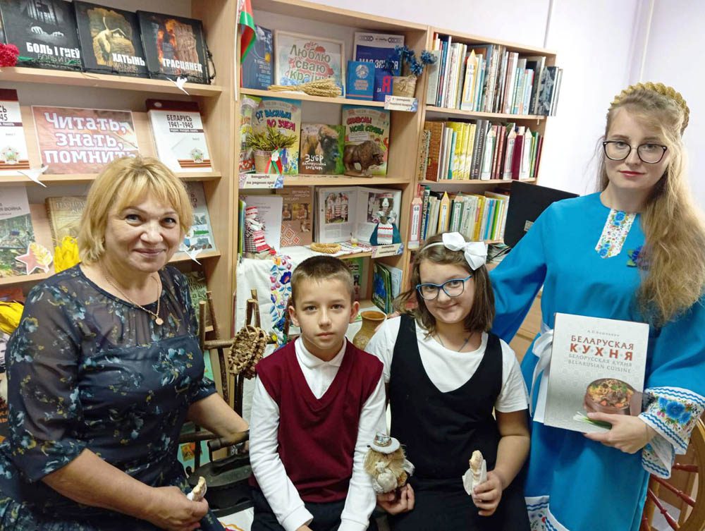 Для юных гостей была организована экскурсия-сюрприз «Поздравь библиотеку с праздником». В информационно-познавательном центре с ребятами проводила мероприятие хозяйка Василина. Помогал ей во всем домовенок Кося, который, согласно белорусской мифологии, является защитником и оберегом дома.