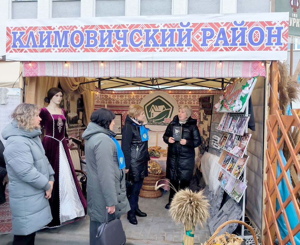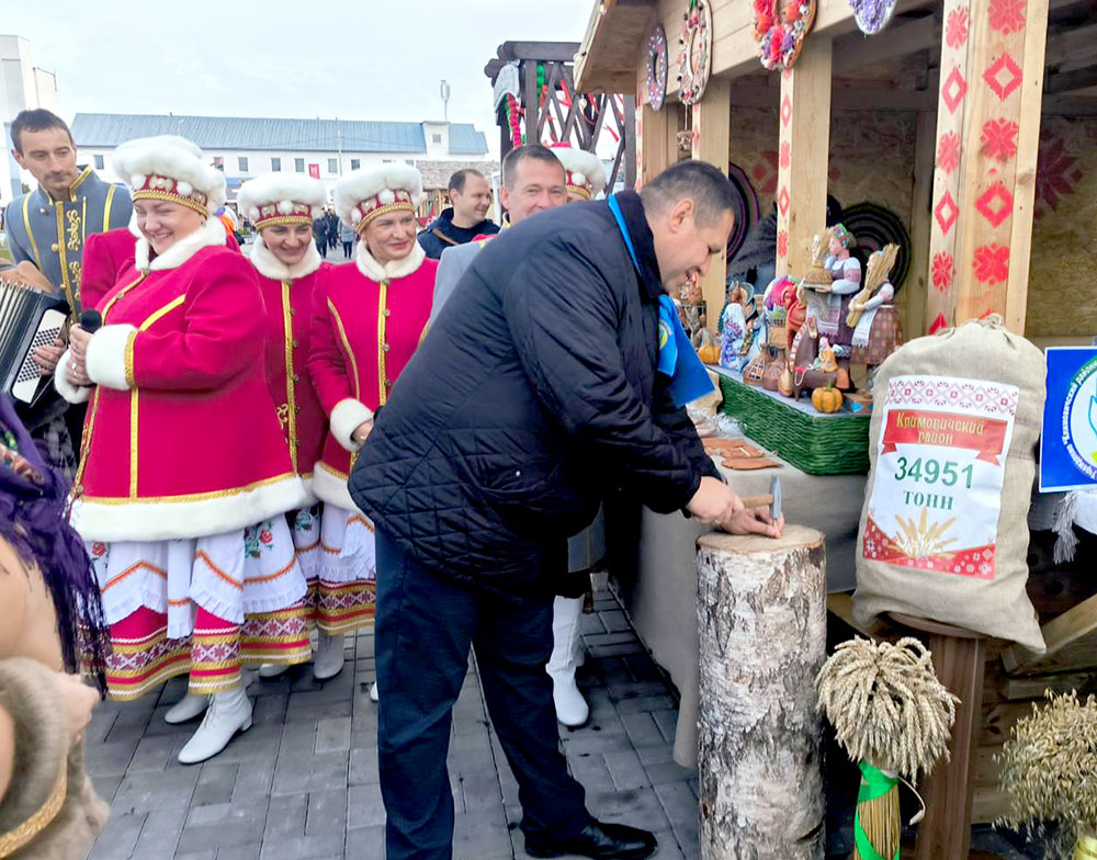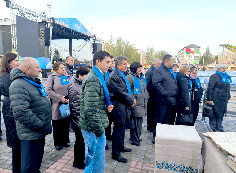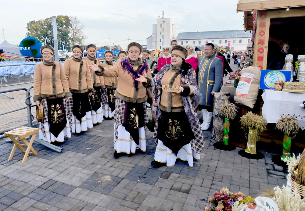 На областных «Дажынках» в Кричеве земляков и гостей праздника радушно встречают хозяйки климовичского подворья Ганна и Марыля.