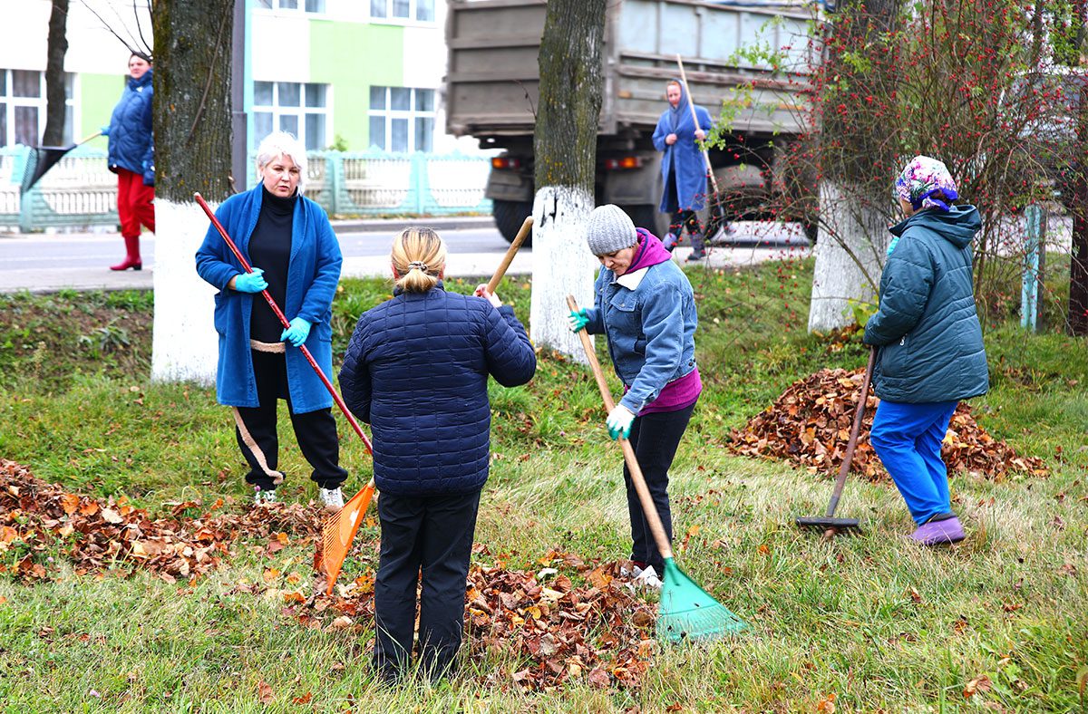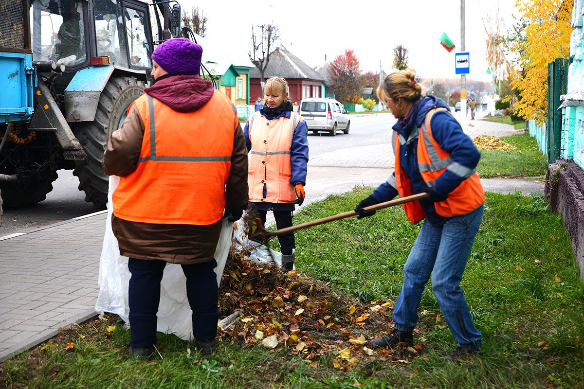 Благоустройством города и сельских населенных пунктов занимаются жители Климовщины 25 октября во время проведения республиканского субботника.