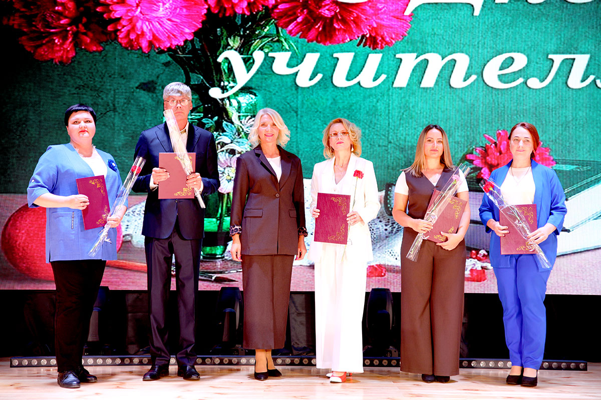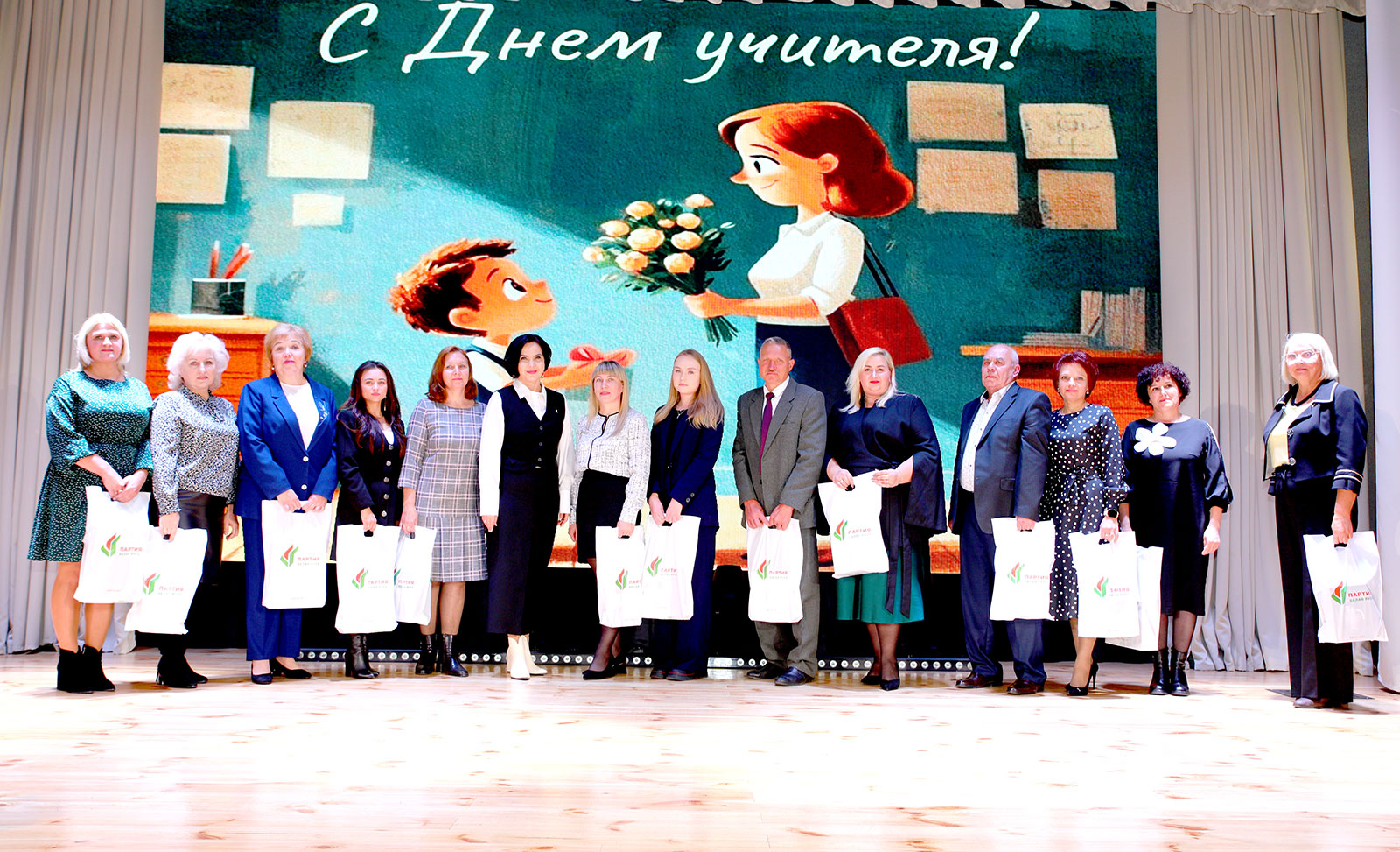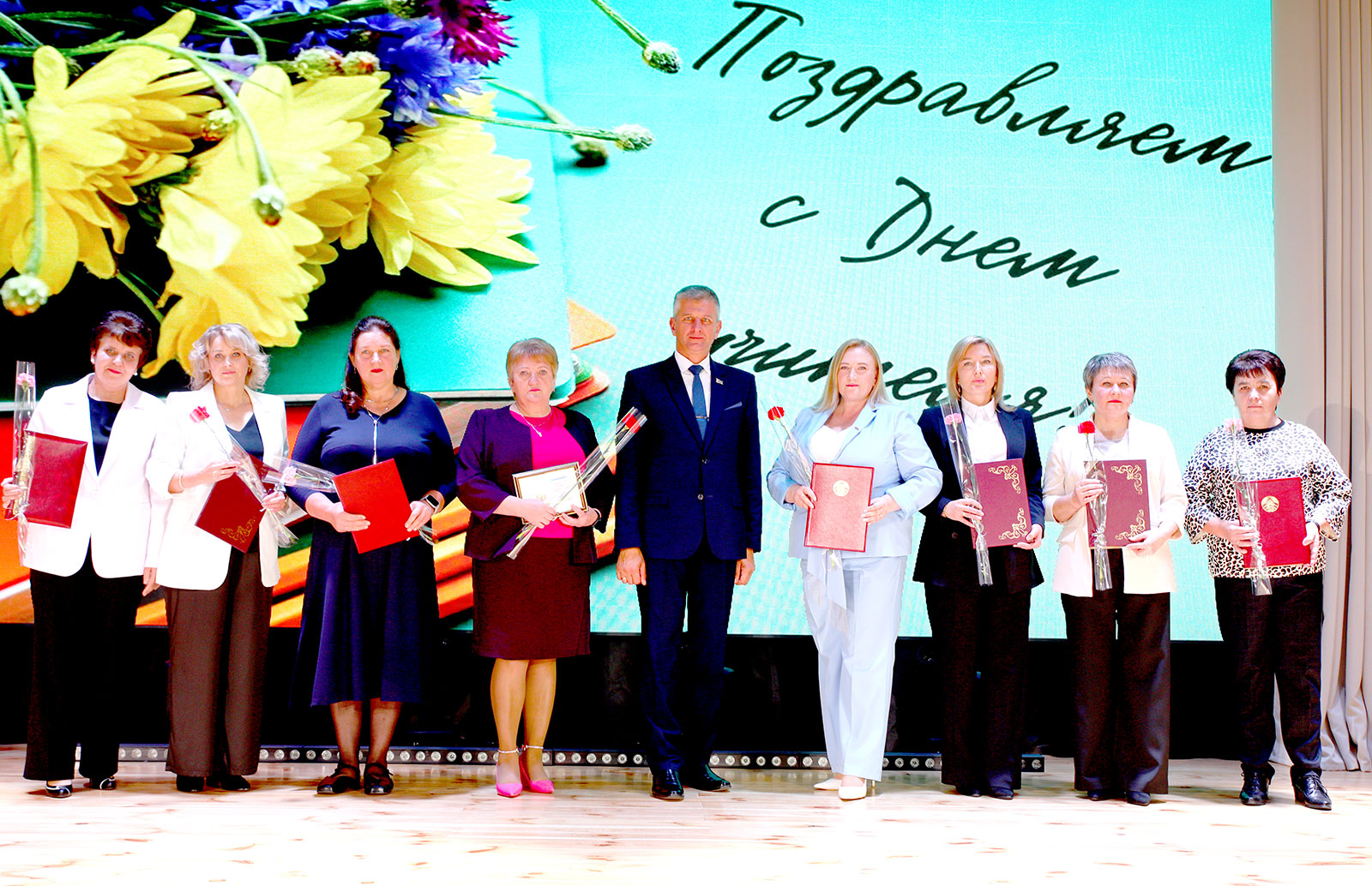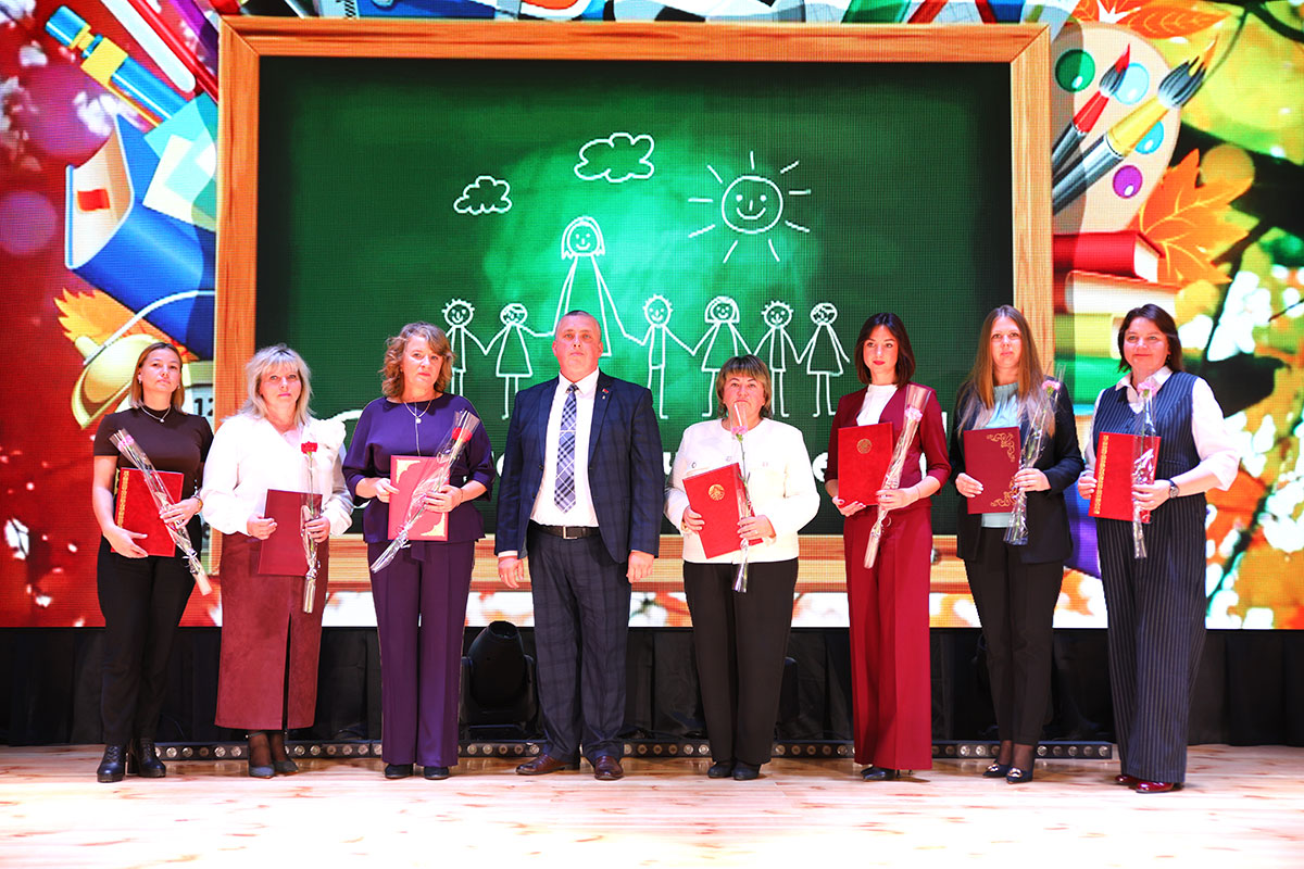 Ценными подарками структуры награждены заместитель заведующего по основной деятельности детского сада «Журавушка» Ирина Кустова, учитель-дефектолог детского сада № 1 «Березка» Марина Глушакова, заместитель заведующего детского сада № 7 «Теремок» Ирина Пантелеева, воспитатель детского сада № 4 «Ромашка» Юлия Рубанова, музыкальный руководитель детского сада № 5 «Росинка» Ольга Денисова, учитель белорусского языка и литературы Милославичской средней школы Елена Василенко, воспитатель детского сада № 6 «Светлячок» Светлана Глушак, заместитель директора Роднянской средней школы Кристина Хроменкова, учитель русского языка и литературы Звенчатской базовой школы Елизавета Хомченко, учитель физической культуры и здоровья Барсуковской базовой школы Игорь Стародуб, учитель информатики Тимоновской средней школы Оксана Вознюк, учитель физической культуры и здоровья Полошковской средней школы Александр Осмоловский, заместитель директора районной гимназии Юлия Мешкова, заместитель управляющего центра по обеспечению деятельности бюджетных организаций Жанна Попель, ветеран педагогического труда Антонина Шишенок.