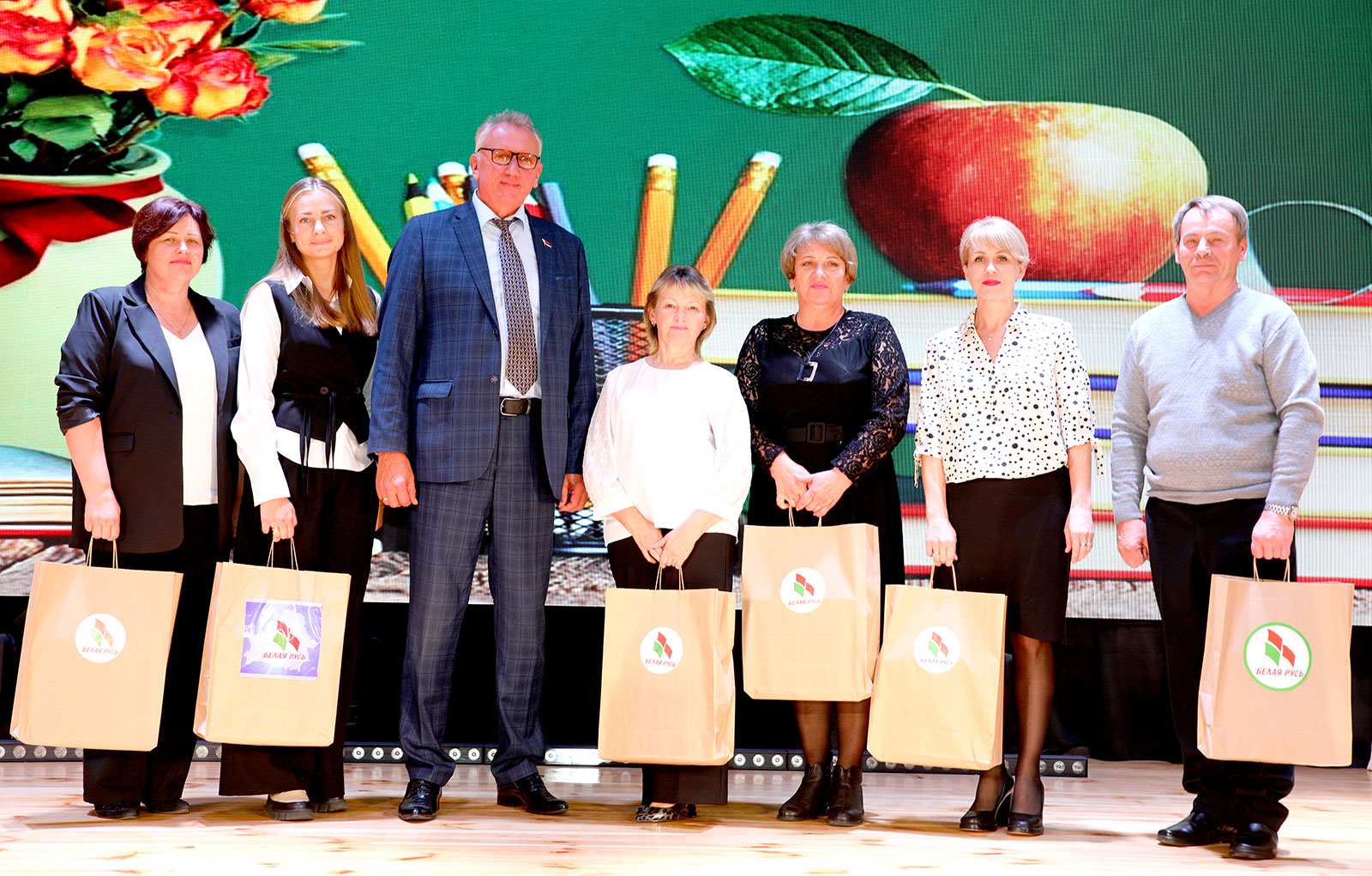 Ценные подарки общественного объединения «Белая Русь» вручались учителю математики Тимоновской средней школы Татьяне Захаренко, учителю начальных классов средней школы № 4 г. Климовичи Елене Иванцовой, начальнику отдела по основной деятельности районного учебно-методического кабинета Юлии Мартыновой, заведующему районным учебно-методическим кабинетом Людмиле Новиковой, учителю английского языка Барсуковской базовой школы Наталье Ткаченко, заведующему учебной мастерской аграрного колледжа Михаилу Шляхтенкову.