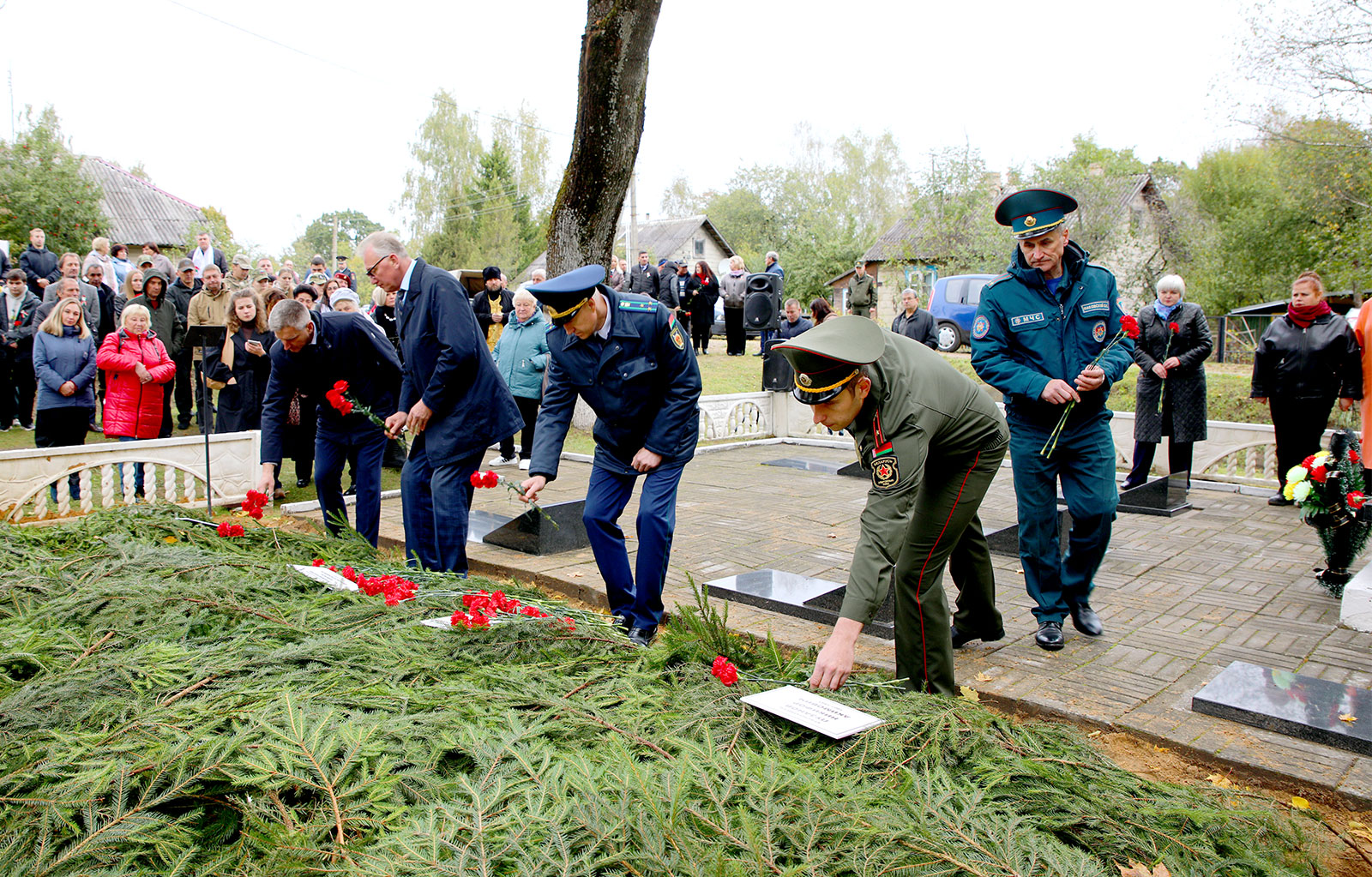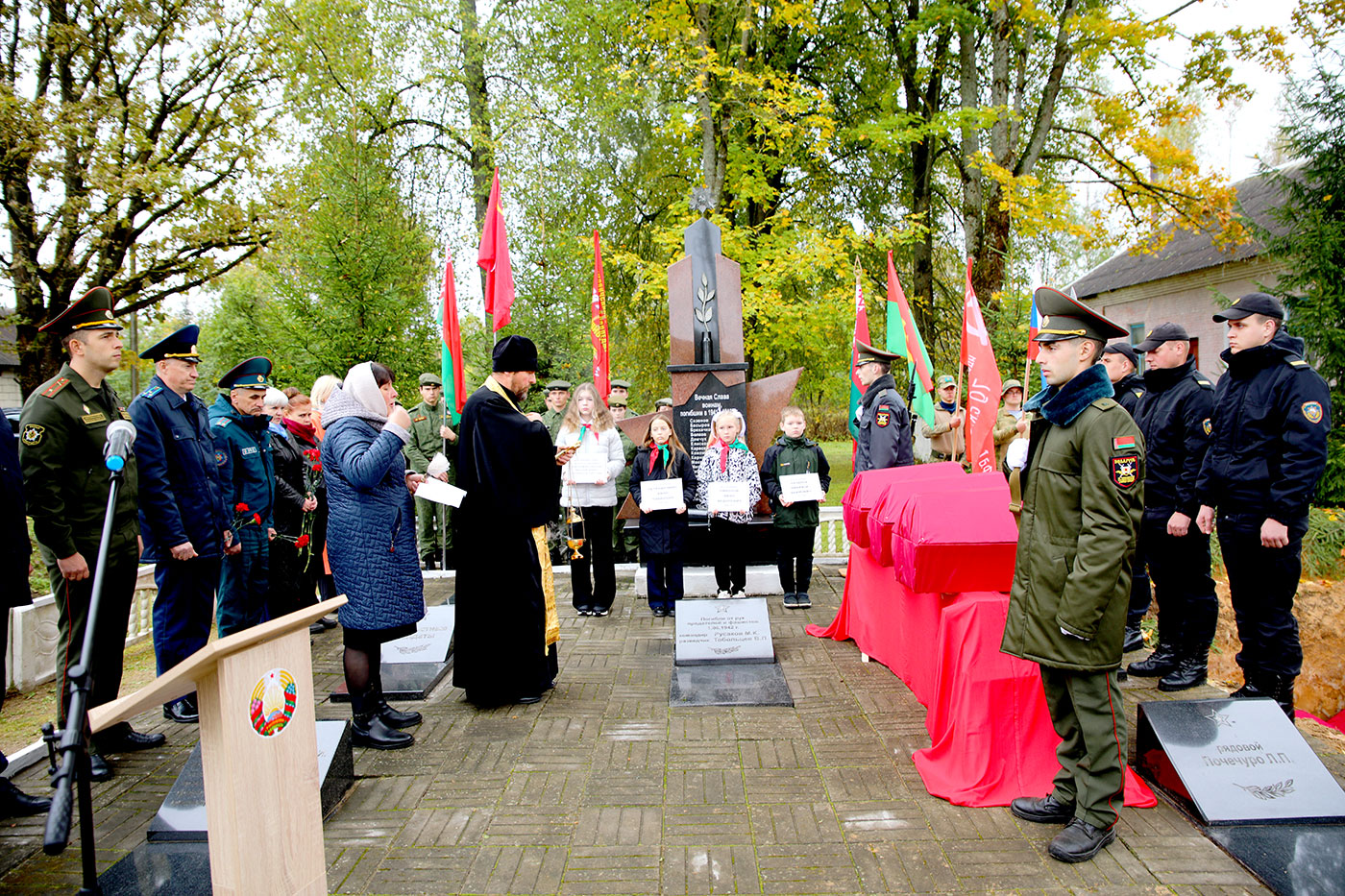 Церемония перезахоронения останков воинов прошла и на кладбище в агрогородке Милославичи.