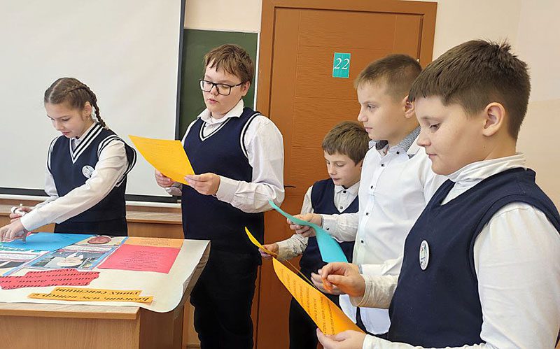 В течение недели учащиеся с энтузиазмом собирали материалы. Малыши из 2-3 классов создавали рисунки, передающие красоту и самобытность белорусской культуры. Ребята из 4-5 классов подбирали пословицы о Родине, погружаясь в глубину народной мудрости. Шестиклассники и семиклассники изучали биографии героев Республики Беларусь, рассказывая о их значимом вкладе в историю страны. Восьмиклассники готовили материалы о достопримечательностях, а девятиклассники анализировали поэтические строки, посвященные Беларуси. Старшеклассники — учащиеся 10-11 классов — представили исследовательские проекты, которые затем защищали перед сверстниками.
