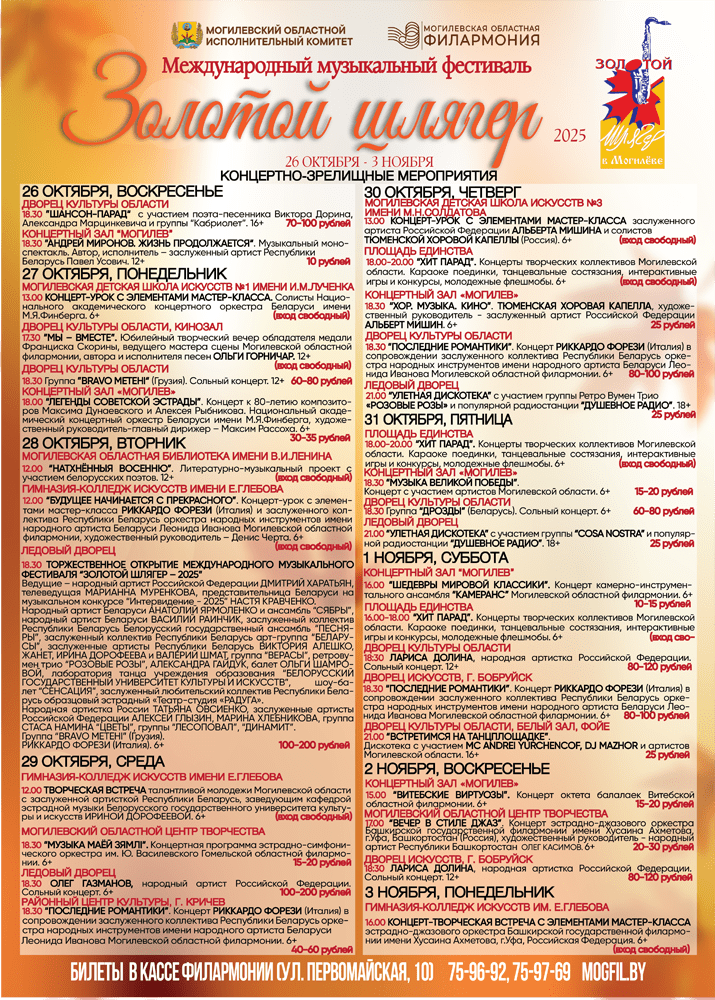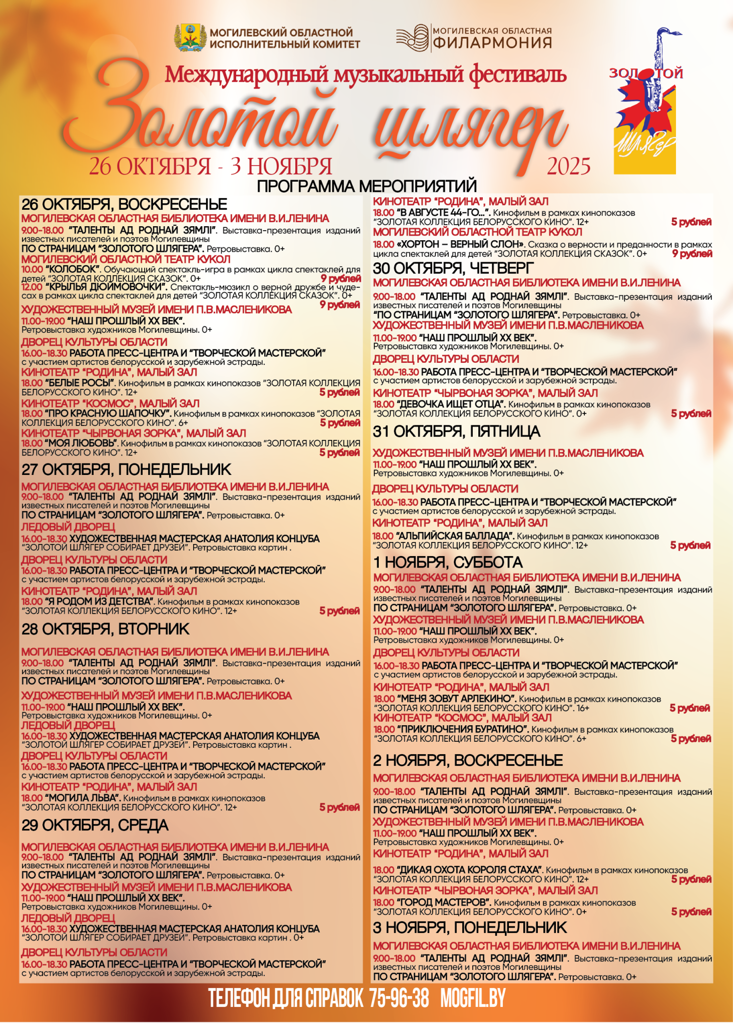 С 26 октября по 3 ноября Могилевская область станет центром музыкальной жизни Беларуси — здесь пройдет юбилейный, 30-й Международный фестиваль «Золотой шлягер». Это событие обещает стать одним из самых ярких культурных моментов года.