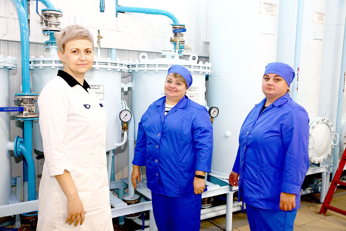 На предприятии трудится немало опытных специалистов. Среди них — мастера Валентина Галынская и Елена Захаркевич, операторы линии Оксана Агеева, Валентина Жарикова, Ирина Нестерова. Много лет отработала на заводе обработчик воды Ирина Столбовая.