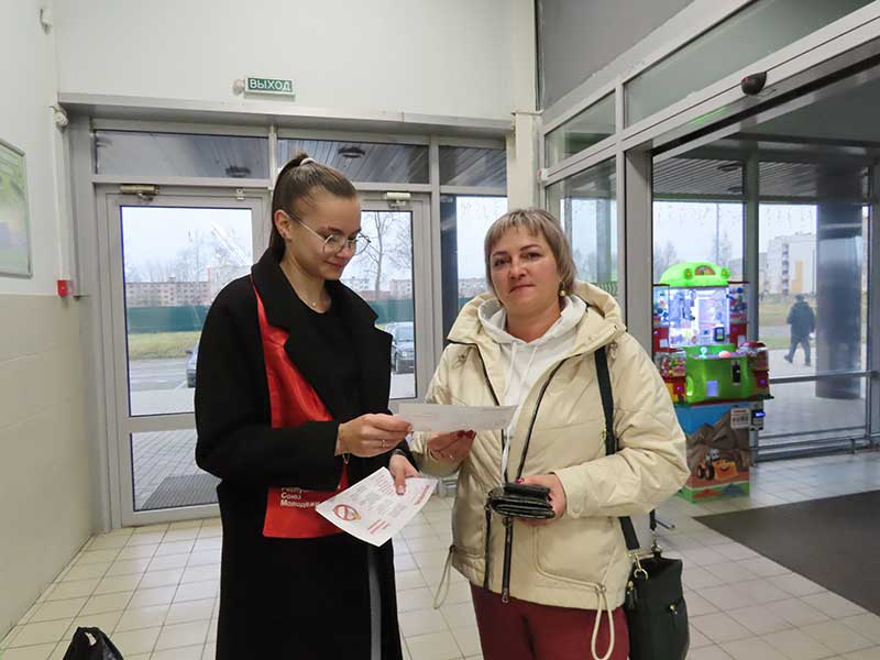Утром 28 ноября возле магазина «Евроопт Super» царило оживление: активисты района, молодые специалисты ОАО «Климовичский ЛВЗ» вместе с первым секретарем райкома ОО «БРСМ» Натальей Судиловской встречали прохожих тематическими листовками. Они напомнили климовчанам, что забота о себе начинается с простых шагов — внимательного отношения к собственному здоровью.
