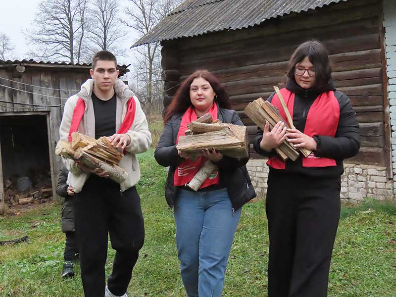 — Молодежь Климовщины, активисты БРСМ всегда готовы откликнуться, чтобы добрыми делами порадовать тех, кому нужно помочь, — отметила первый секретарь райкома ОО «БРСМ» Наталья Судиловская. Сегодня мы в гостях у Галины Прокоповой — жительницы агрогородка Тимоново. Вместе с учащимися четвертой городской школы Антоном Даниленко и Елизаветой Галовой оказали помощь в доставке продовольствия, принесли дрова и воду в дом.