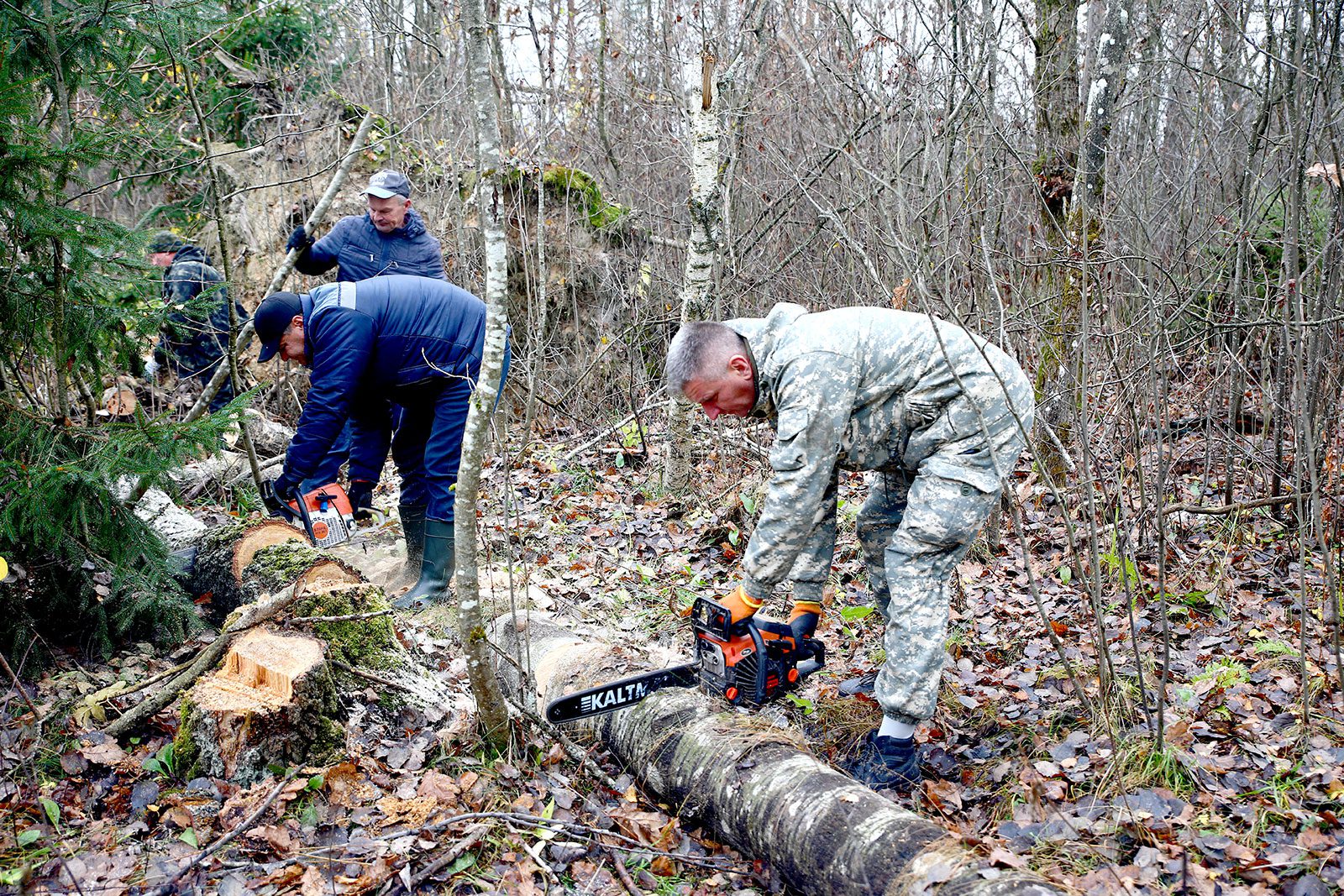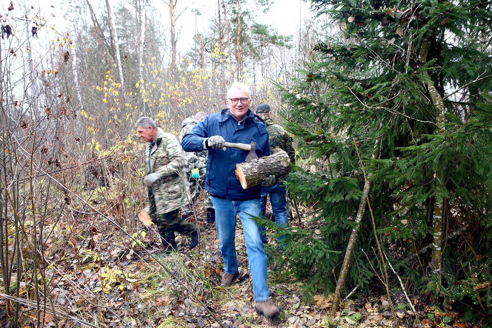 В рамках Года благоустройства председатель райисполкома Виктор Пугач и председатель районного Совета депутатов Василий Захаренко вместе с руководителями предприятий и учреждений Климовщины организуют трудовые десанты по ликвидации аварийных деревьев, вырубке дикорастущей растительности на придорожной полосе автодороги Р-43.