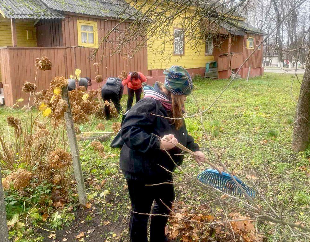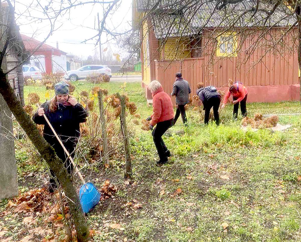 На Климовщине продолжаются работа по благоустройству и наведению порядка на земле. По четвергам горожане и сельчане активно участвуют в мероприятиях единого санитарного дня. Так, работники райисполкома 6 ноября наводили порядок на придомовых территориях на улице Магона в Климовичах.