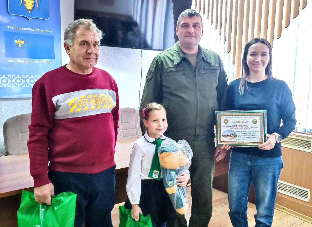 Памятные призы преподнесли «героям» фото — учащейся Климовичской районной гимназии Оливии Андрюшковой и лесоводу Савиничского лесничества Климовичского лесхоза Василию Жарикову.