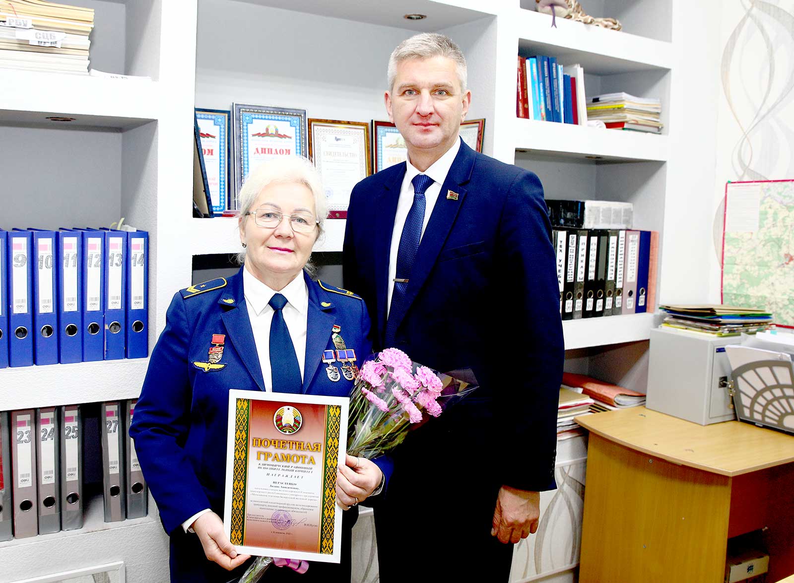 Председатель Климовичского райисполкома Виктор Пугач 27 ноября вручил начальнику железнодорожной станции Климовичи Лидии Нерастенко Почетную грамоту райисполкома. Высшей районной награды Лидия Анисимовна удостоена за многолетний плодотворный труд на железнодорожном транспорте, высокий профессионализм, образцовое выполнение должностных обязанностей.