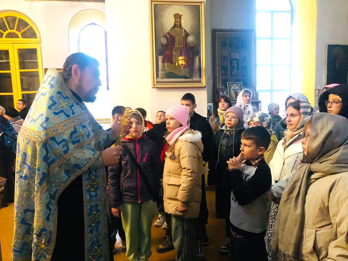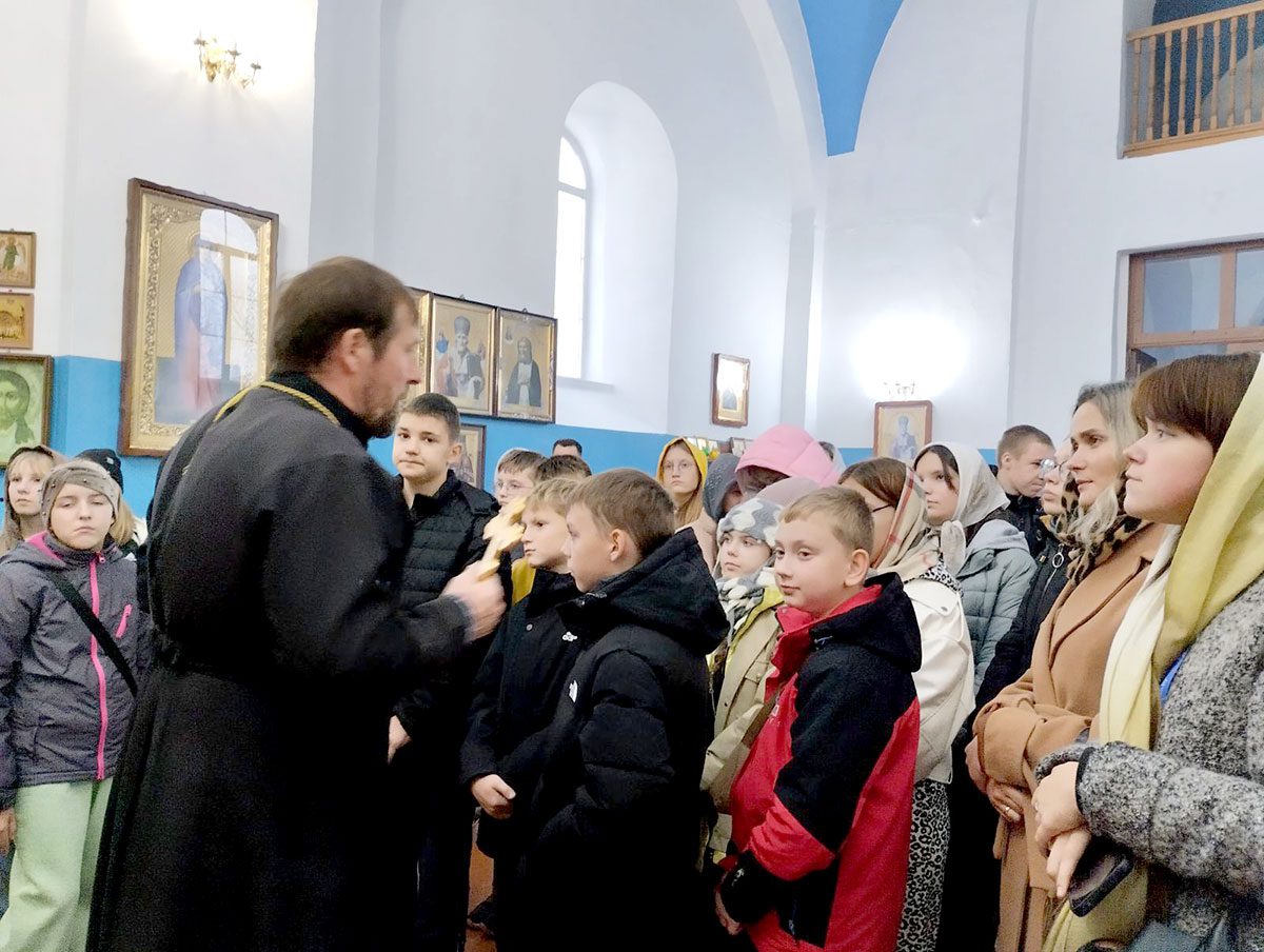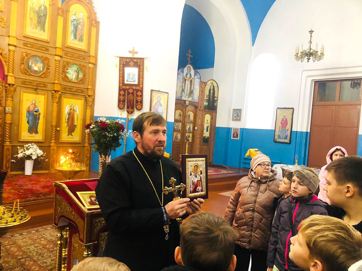 Протоиерей Николай и отец Сергий познакомили со святынями храма, поведали об иконах, об особенностях храмового пространства и его символическом значении. Также назвали основные догмы православия, Заповеди Божии, христианские добродетели, напомнили о важности молитвы и о необходимости посещения храмовых богослужений православными христианами.