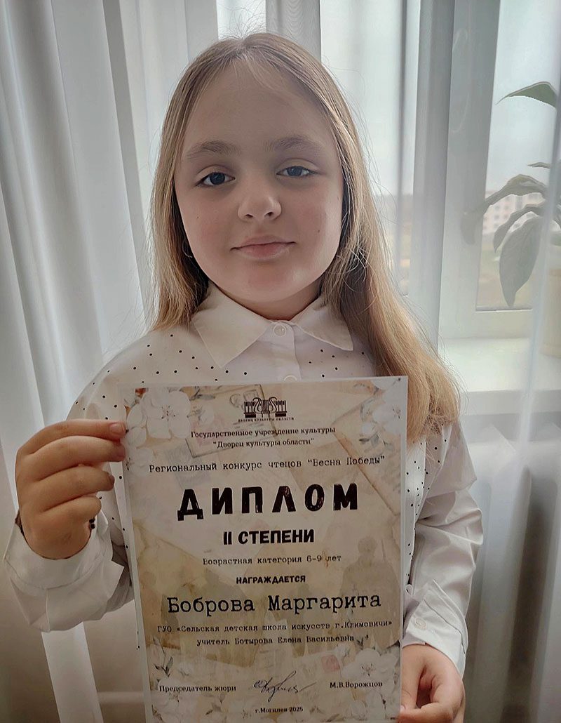 В региональном конкурсе чтецов «Весна Победы» учащиеся театрального отделения сельской детской школы искусств Климовичского района вновь продемонстрировали высокий уровень мастерства и завоевали заслуженные награды: