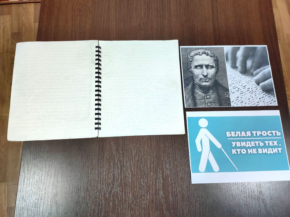 Библиограф Кристина Старовойтова подготовила для гостей информационный час «Мир на кончиках пальцев». Мероприятие было посвящено истории возникновения шрифта Брайля, который помогает слепым и слабовидящим людям читать и писать. Также были проведены интересные конкурсы, по условиям которых надо было определить предмет с закрытыми глазами и найти каждой фигурке свое место. В завершение мероприятия был продемонстрирован тематический видеоролик.