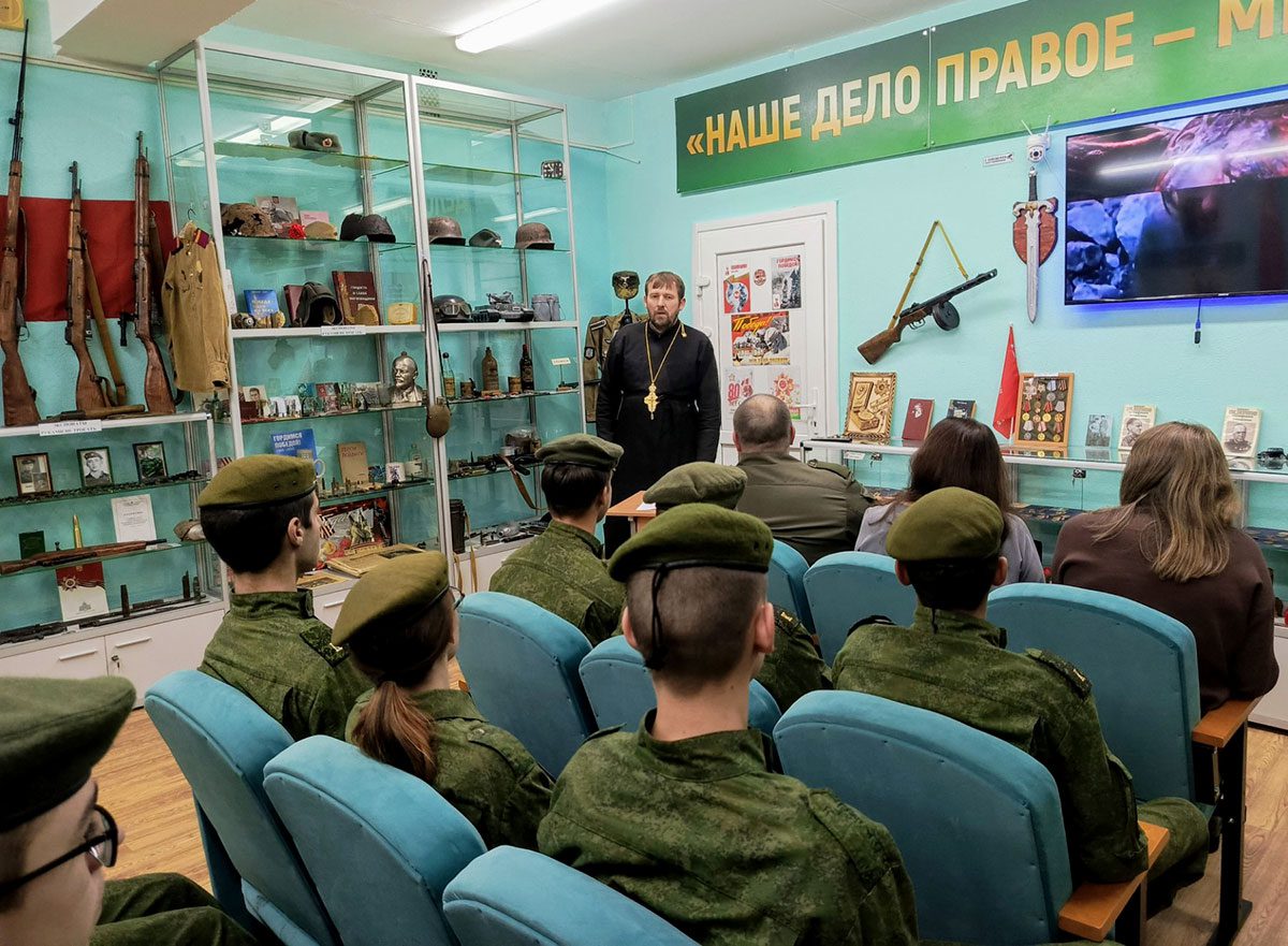 Члены клуба «За Родину!» Климовичского государственного аграрного колледжа встретились с настоятелем Звенчатской и Милославичской церквей отцом Николаем. Молодым людям рассказали о традиционных семейных ценностях, духовных праздниках.