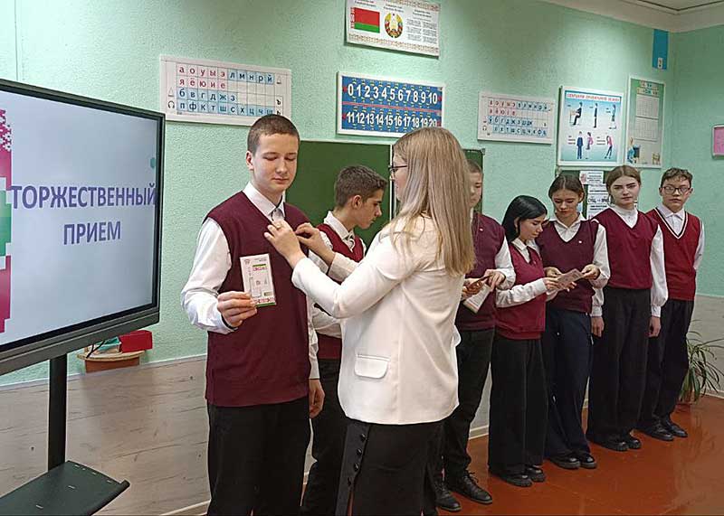Вручила билеты и закрепила значки педагог-организатор учреждения образования Анна Тимощенко.