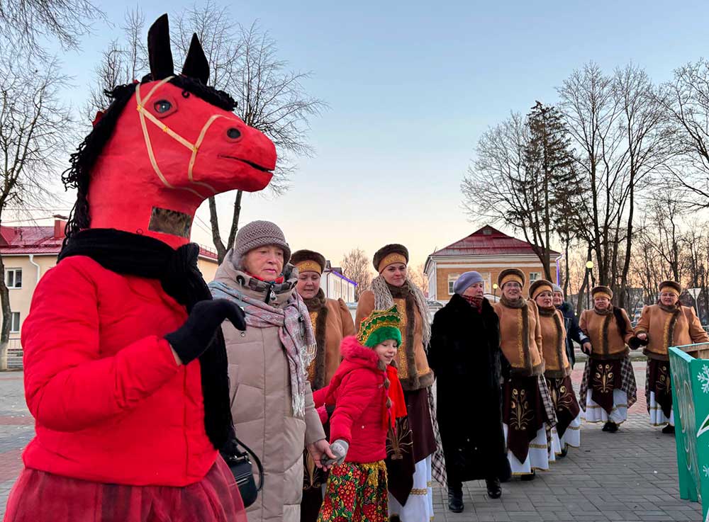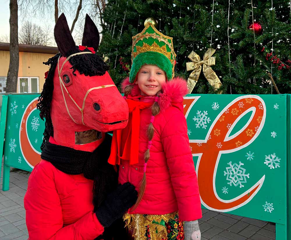 Праздничное настроение всем присутствующим дарил народный ансамбль народной песни «Тимовляне». Их задорные песни и искренние голоса согрели сердца зрителей даже в морозный вечер, а символ наступающего 2026 года — Лошадь — вовлекала всех в танцевальные круги.