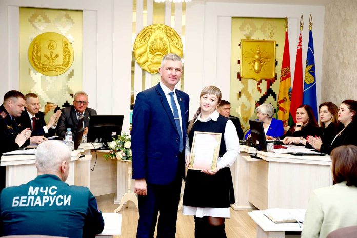 Глава района Виктор Пугач на очередном заседании райисполкома 15 декабря вручил заслуженную награду ведущему специалисту представительства Белгосстраха по Климовичскому району Виктории Живодровой.