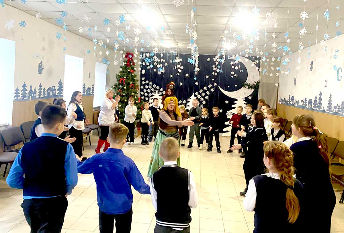 В Климовичском центре дополнительного образования детей и молодежи сотрудники учреждения подготовили для ребят театрализованное представление «Зажжем с конем Юлием». Такое вот необычное название и сценарий представления тоже необычный. Здесь, помимо Деда Мороза, Снегурочки, Звездочета, богатыря Алеши, Кощея, Бабы Яги, цыганки, есть еще такой персонаж, как конь Юлий — символ наступающего 2026 года. Да, еще была уползающая Змея — символ уходящего 2025 года.