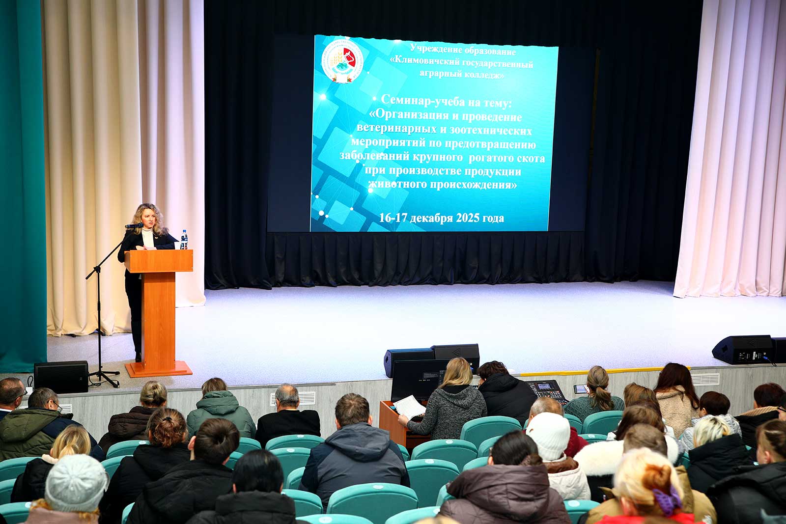 В Климовичском государственном аграрном колледже продолжает свою работу двухдневный семинар-учеба для работников сельскохозяйственных предприятий Приднепровского края. В мероприятии участвуют зоотехники, ветеринарные врачи, специалисты по искусственному осеменению животных, лаборанты молочно-товарных комплексов. Аграрии обсуждают, как лучше организовать и провести ветеринарные и зоотехнические мероприятия по предотвращению заболеваний крупного рогатого скота при производстве продукции животного происхождения. В теоретических и практических занятиях участвуют десятки специалистов.