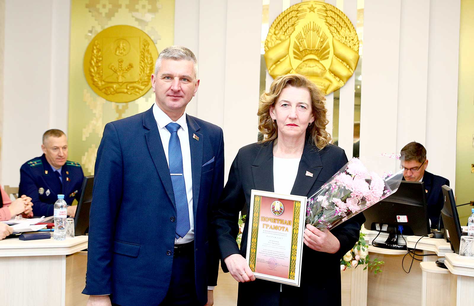 Управляющий делами Родненского сельского исполнительного комитета Алла Кузьменок за многолетний плодотворный труд в органах государственного управления, образцовое выполнение служебных обязанностей награждена Почетной грамотой райисполкома. Заслуженную награду Алле Викторовне вручил председатель райисполкома Виктор Пугач.