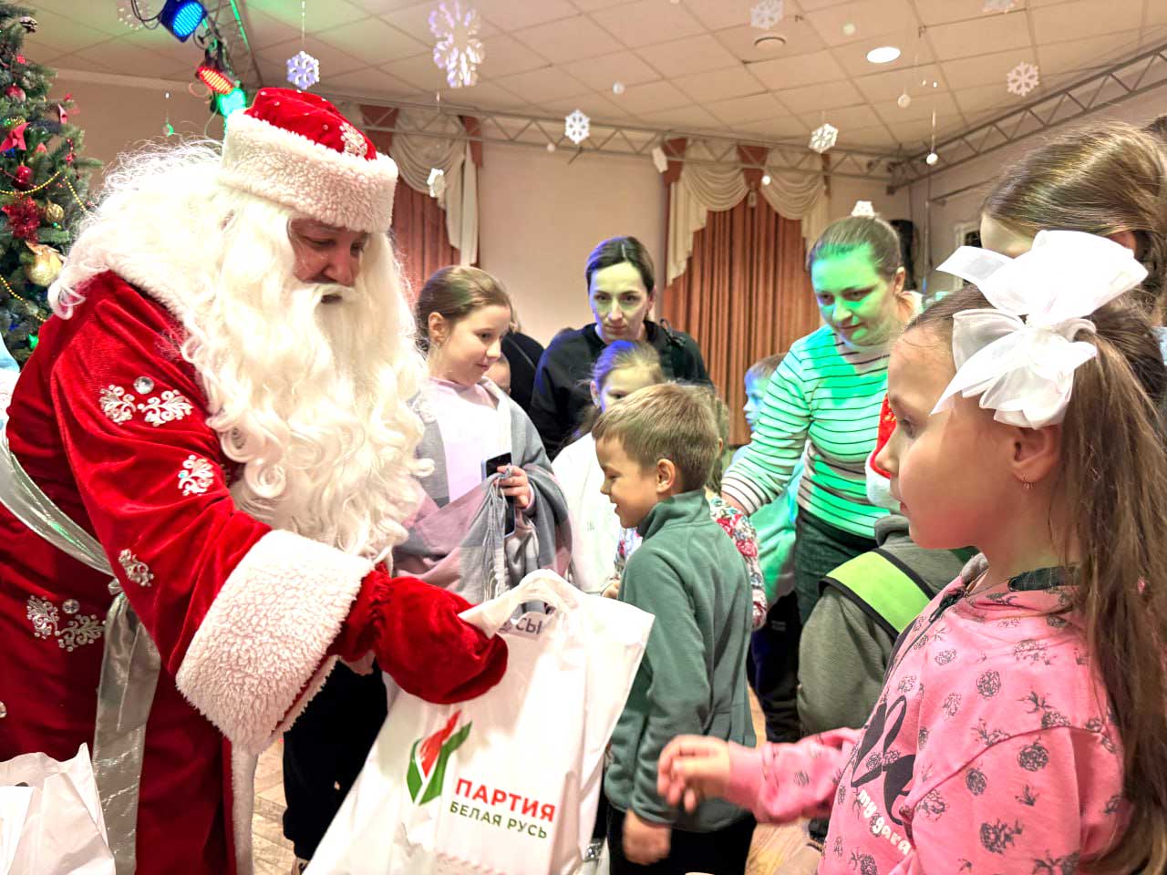 Могилевский областной театр кукол 5 января собрал более ста ребят из Могилева, а также Климовичского, Быховского, Дрибинского, Чаусского, Славгородского и Шкловского районов на праздничное представление у елки. В мероприятии участвовали дети в возрасте от 6 до 11 лет, чьи родители являются членами районных отделений Белорусской партии «Белая Русь». С Новым годом и Рождеством юных жителей Приднепровского края поздравил руководитель областного отделения партии «Белая Русь» Юрий Машин.