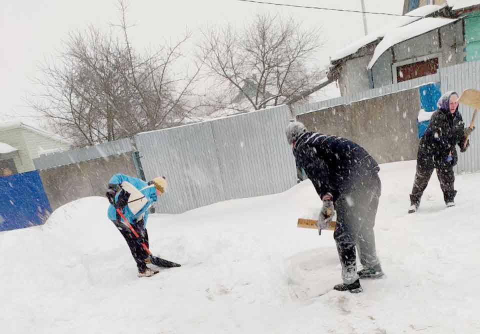 Например, волонтеры БРСМ из первой городской школы расчистили придомовую территорию от снега одиноко проживающей Марии Михайловне Старовойтовой. Члены трудового коллектива ГУО «Полошковская средняя школа Климовичского района» во главе с председателем первичной организации РОО «Белая Русь» Анной Тимощенко, председателем профсоюзного комитета Надеждой Томашовой вместе с членами волонтерского отряда «Добрые сердца» дружно взялись за лопаты, чтобы помочь ветеранам педагогического труда Зинаиде Николаевне Пашкевич и Евгении Савельевне Сафранковой.