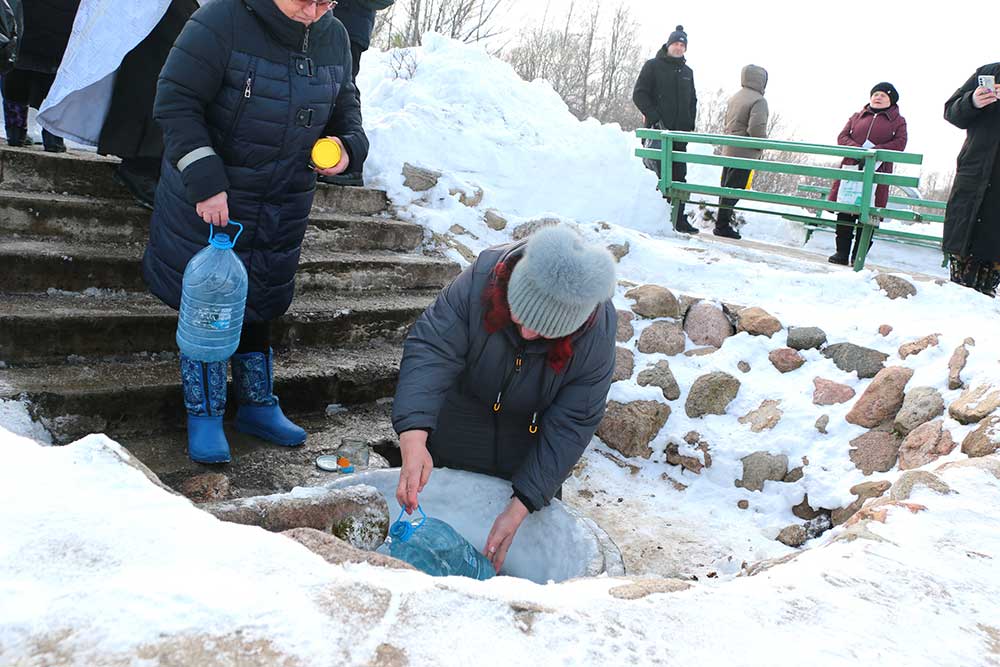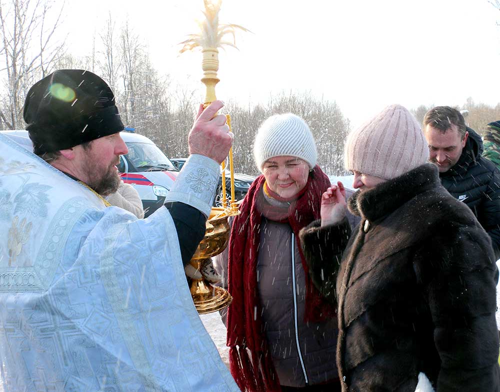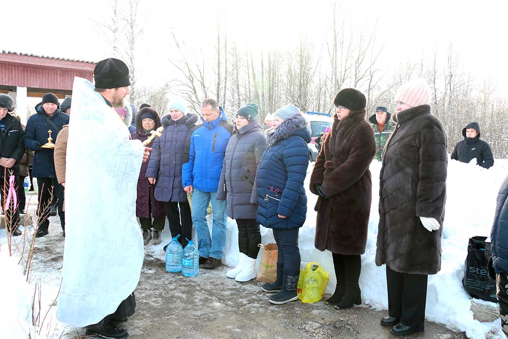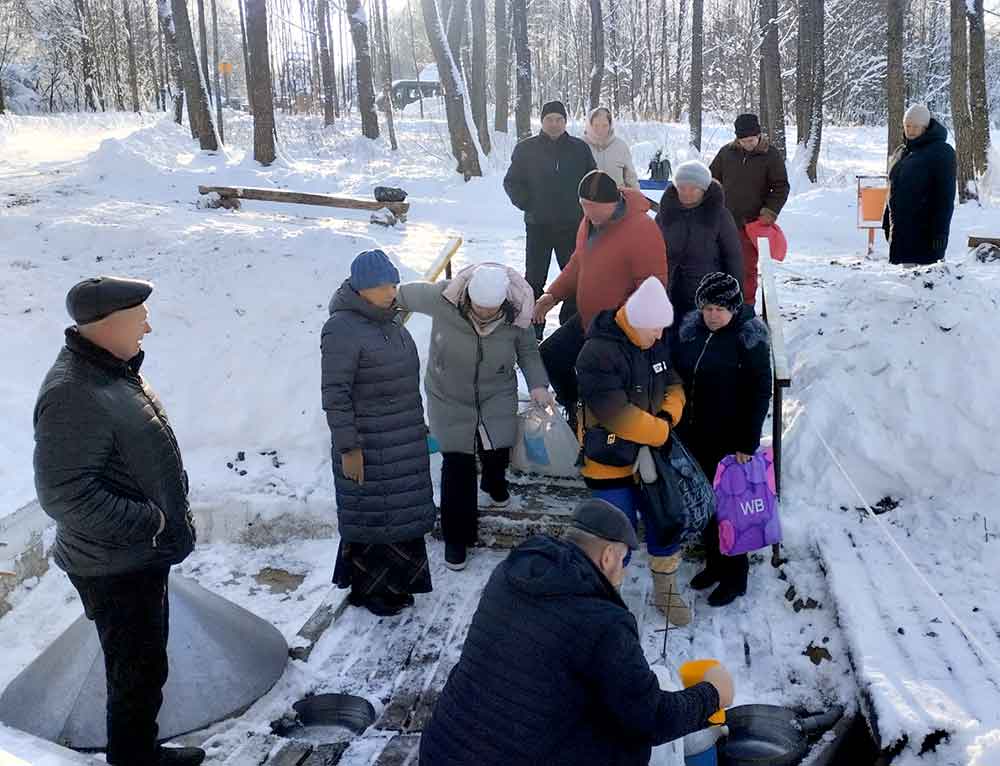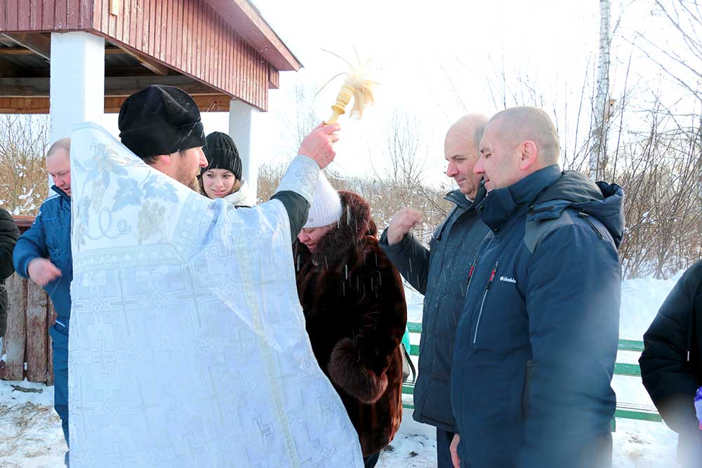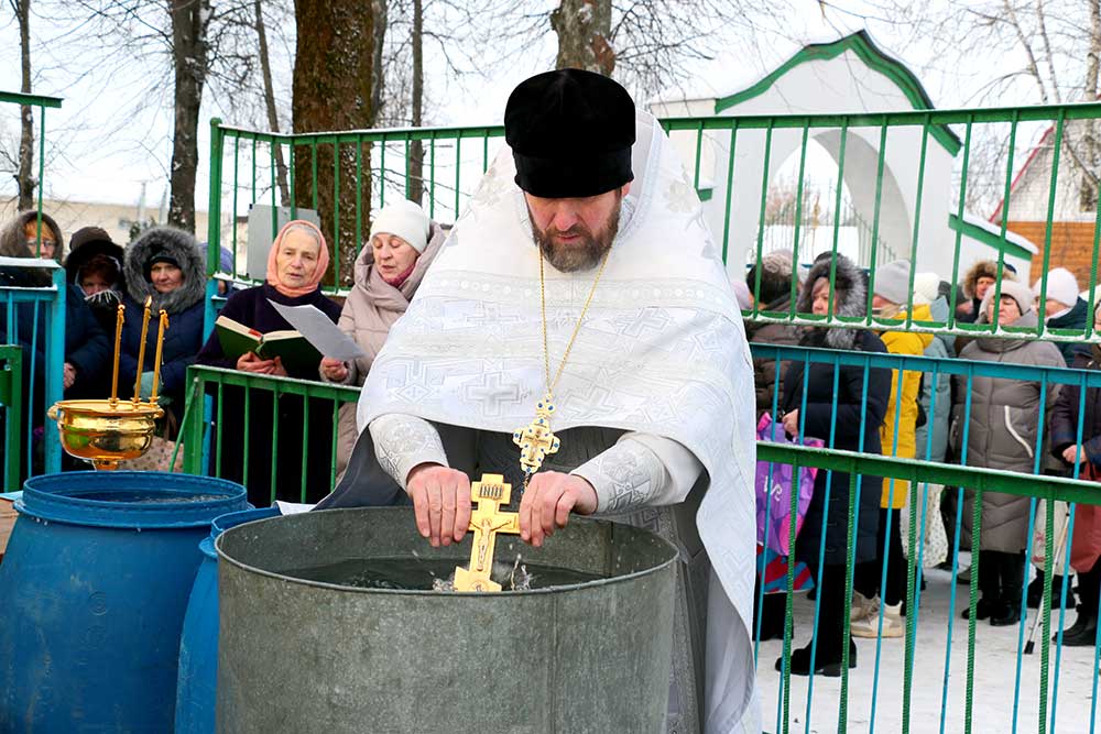 Первой была освящена Михайлова криница в деревне Борисовичи. У этого родника был отслужен праздничный молебен, после чего отец Николай совершил чин, придав воде особый статус агиасмы — великой святыни. Эта древняя традиция освящения природных ключей в день Богоявления символизирует обновление всего творения.