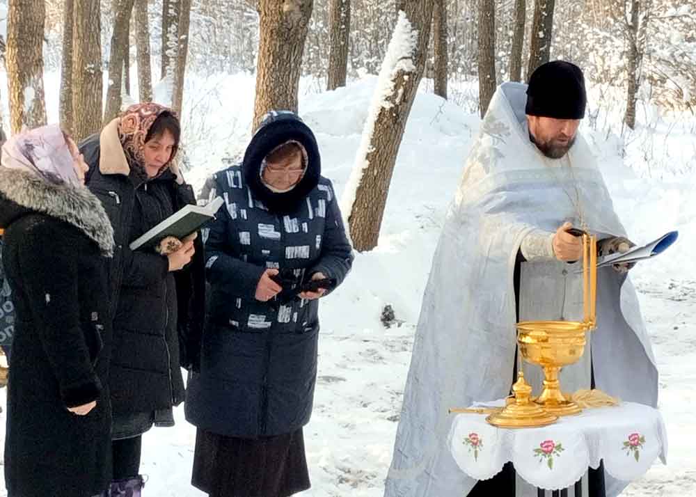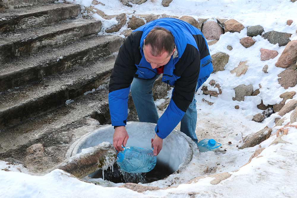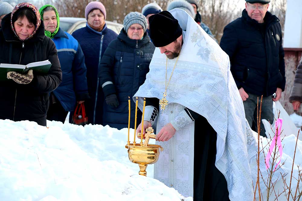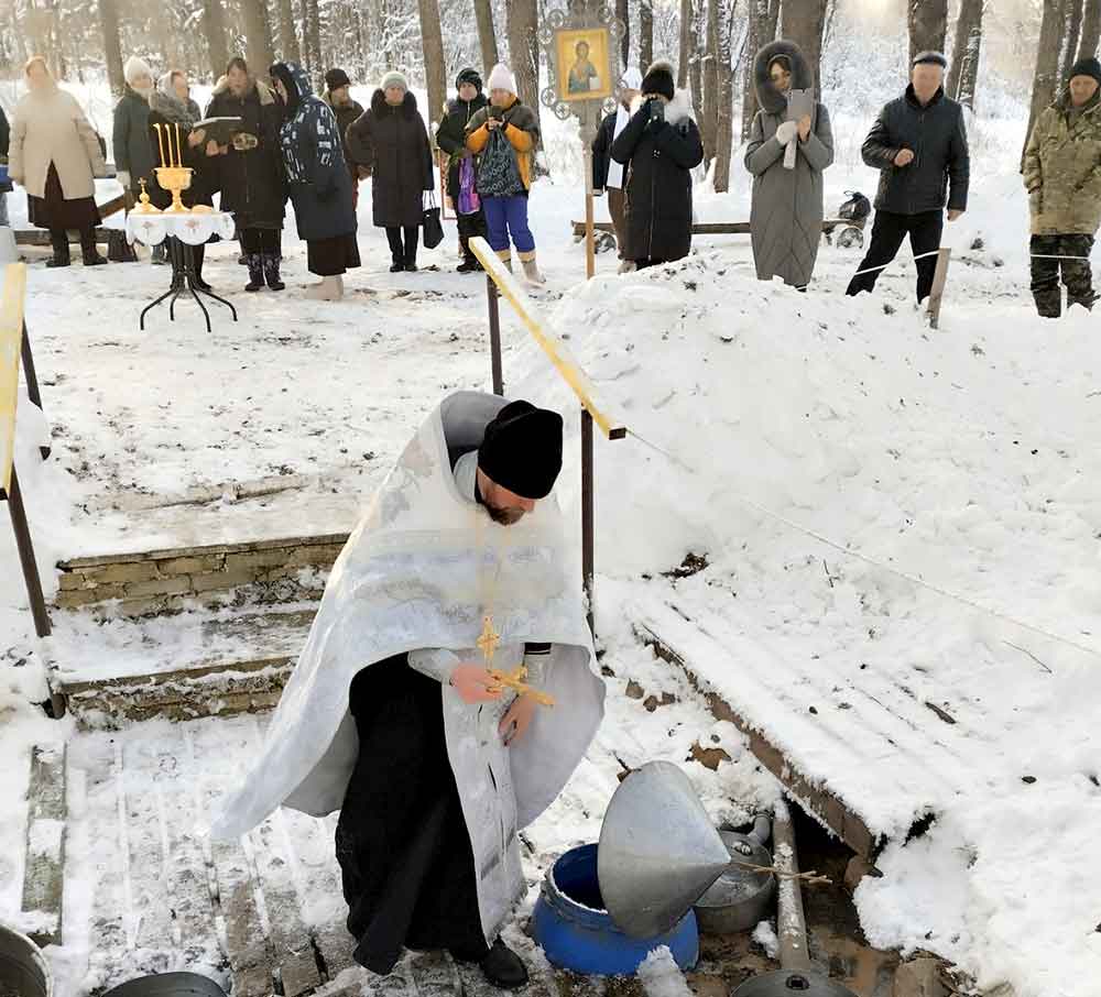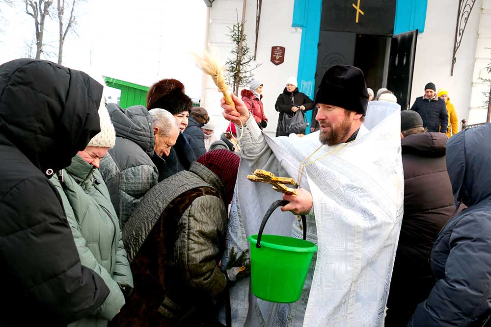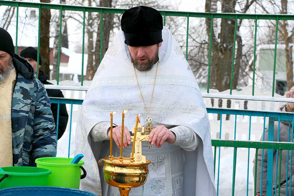 Первой была освящена Михайлова криница в деревне Борисовичи. У этого родника был отслужен праздничный молебен, после чего отец Николай совершил чин, придав воде особый статус агиасмы — великой святыни. Эта древняя традиция освящения природных ключей в день Богоявления символизирует обновление всего творения.