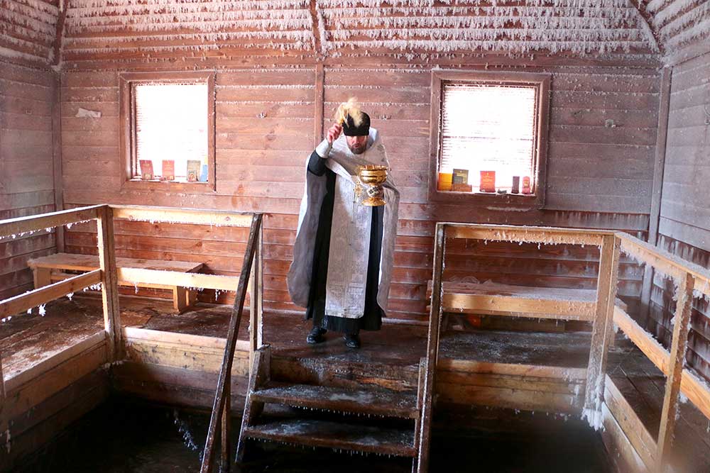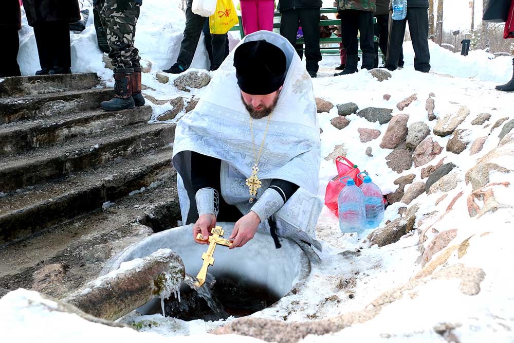 По завершении литургии отец Николай совершил чин великого освящения воды. Молитвы, читаемые в этот день, наделяют воду, называемую агиасмой (великой святыней), особой благодатью. Освященная крещенская вода хранится верующими в течение всего года и употребляется натощак для укрепления духовных и телесных сил.