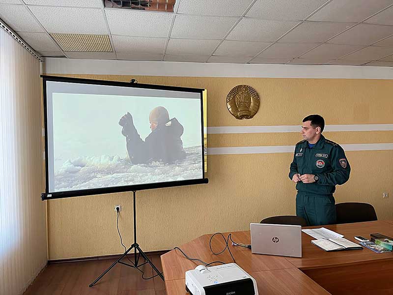 Инспектор сектора пропаганды и взаимодействия с общественностью Андрей Еремин рассказал о безопасном поведении на льду, во время морозов и снегопадов, как оказать первую помощь при обморожении. Был продемонстрирован тематический видеоролик.