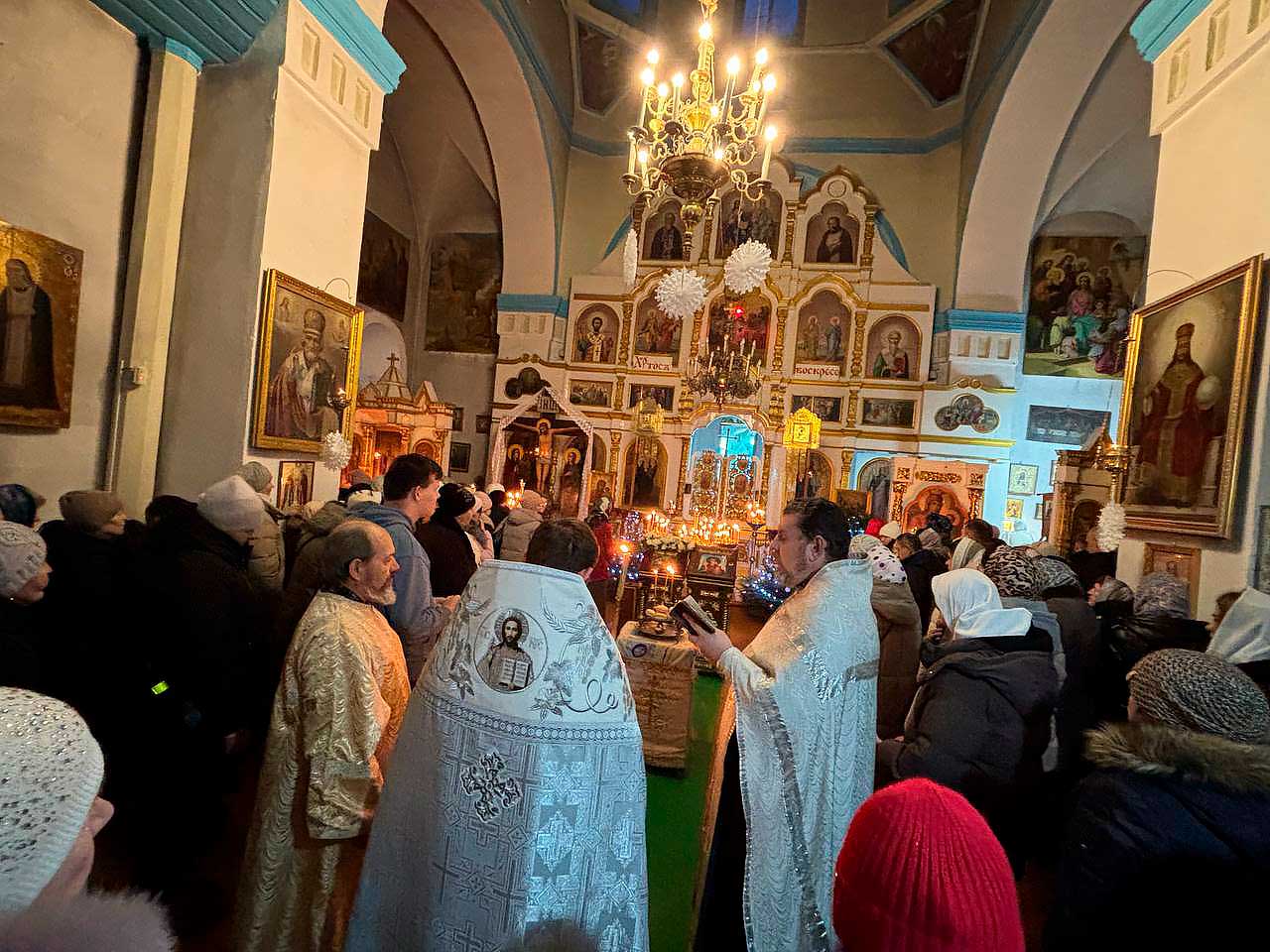 Службу возглавили протоиерей отец Николай и отец Сергий. Верующие собрались в храме, чтобы молитвенно встретить один из самых значимых христианских праздников, объединяющий людей в духовной радости и надежде.