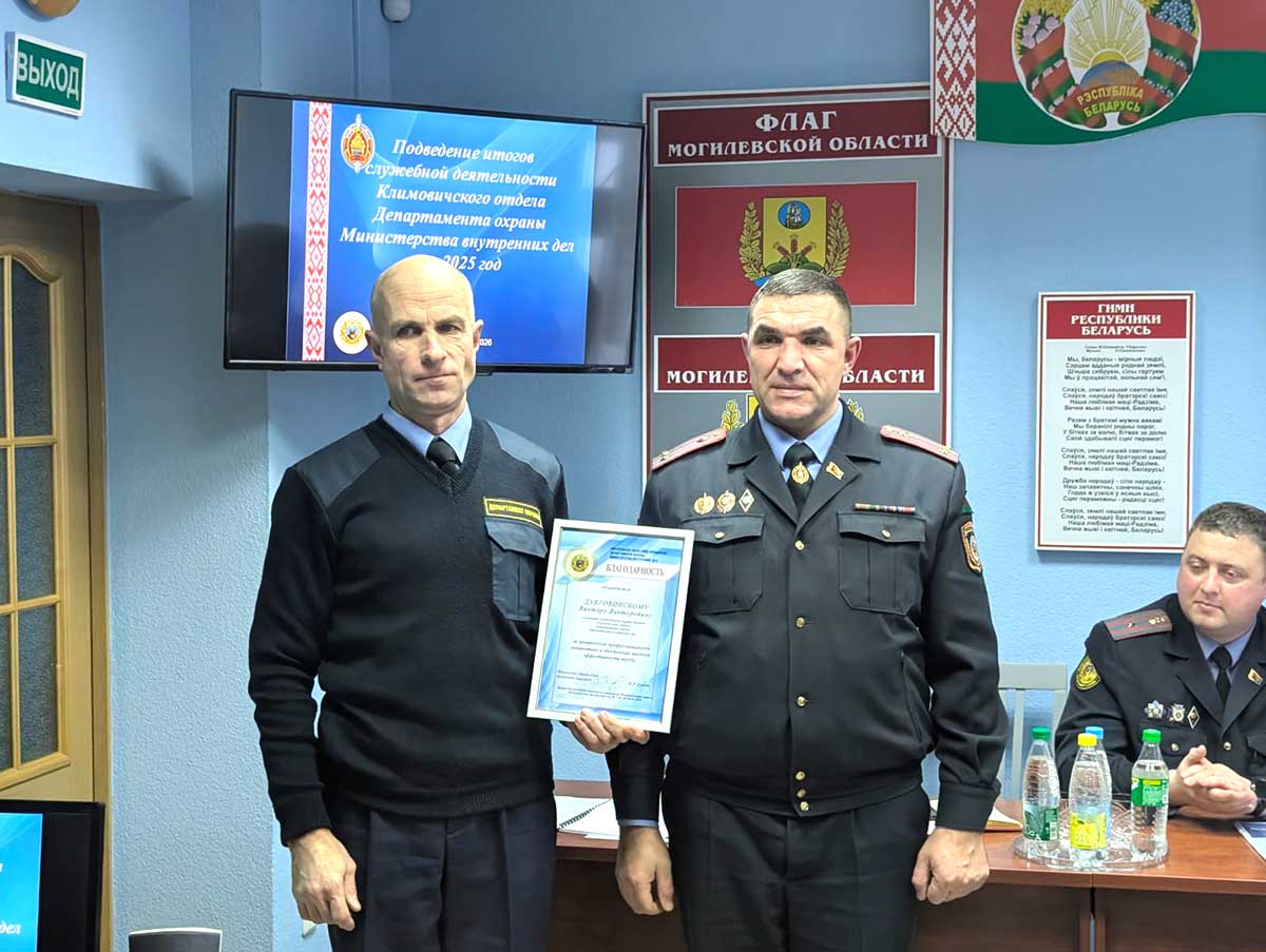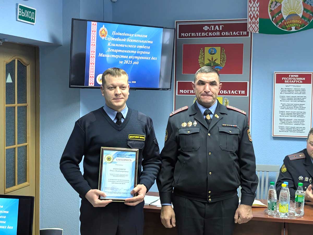 В Климовичском отделе Департамента охраны МВД 12 января подвели итоги служебной деятельности за 2025 год.