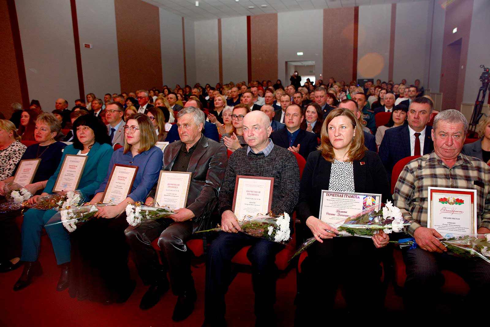Почетной грамотой комитета по сельскому хозяйству и продовольствию Могилевского облисполкома награждены: заместитель главного бухгалтера КСУП «Полошково» Любовь Агеева; директор КСУП «Михалинский» Надежда Голяченко; зоотехник филиала «КлимАгро» ОАО «Климовичский комбинат хлебопродуктов» Ольга Подобед; бригадир производственной бригады в животноводстве ОАО «Племзавод «Тимоново» Юрий Сапранков; тракторист-машинист КСУП «Михалинский» Андрей Ярцев, директор ОАО «Роднянский» Сергей Мартышевский.