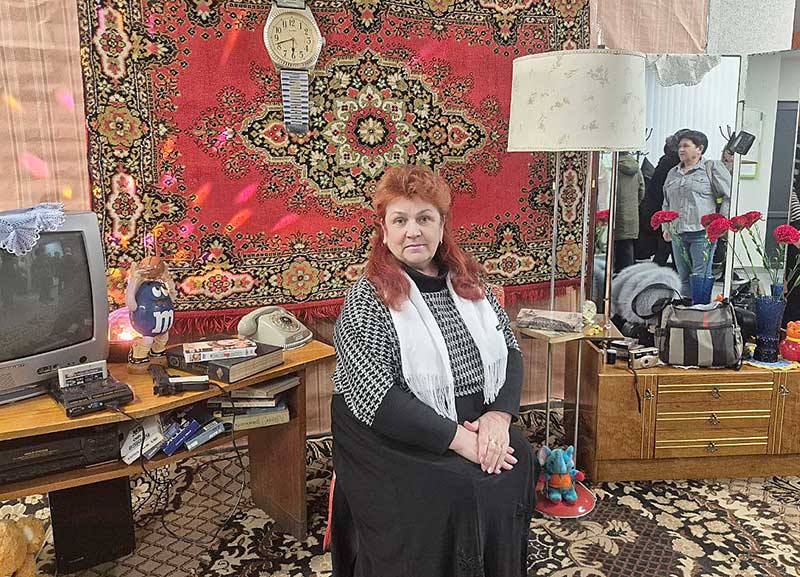 В фойе районного центра культуры была организована тематическая фотозона, которая пользовалась большой популярностью у земляков: здесь и ковер на стене, кассетный магнитофон, дисковый телефон, любимый дамами трельяж — глядя в который, можно было рассмотреть свою прическу со всех сторон.