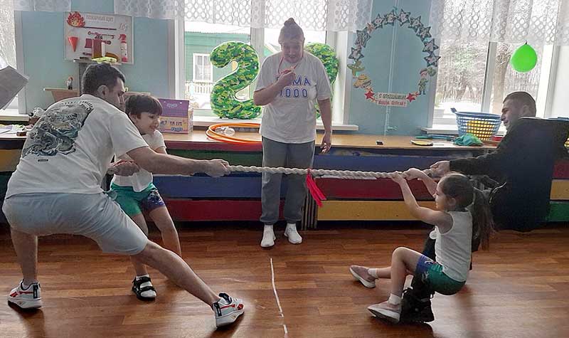 Дети с восторгом наблюдали за своими папами, а папы с гордостью поддерживали своих сыновей и дочерей. В каждом конкурсе чувствовался боевой настрой: взрослые и малыши вместе преодолевали препятствия, демонстрировали силу и ловкость, доказывая, что они — настоящая команда.