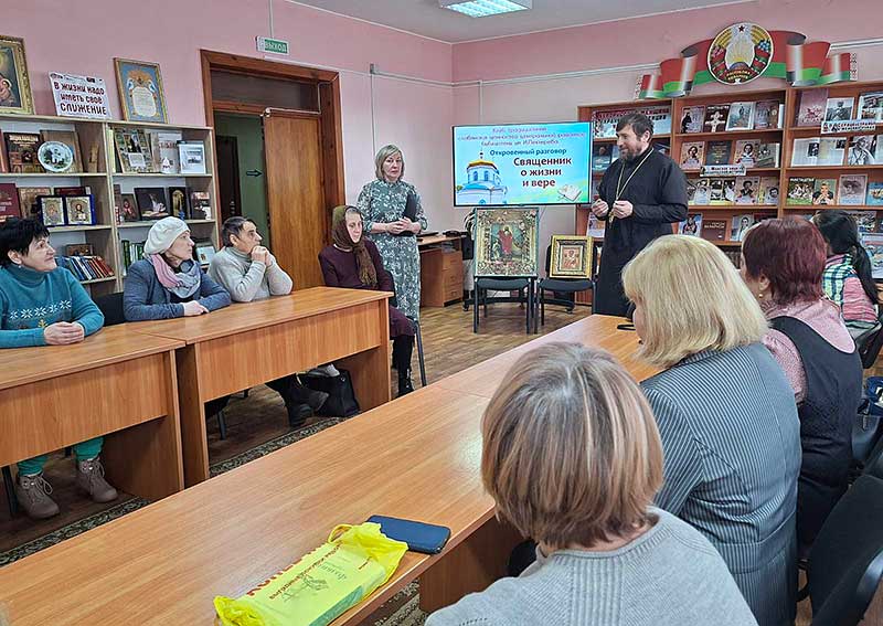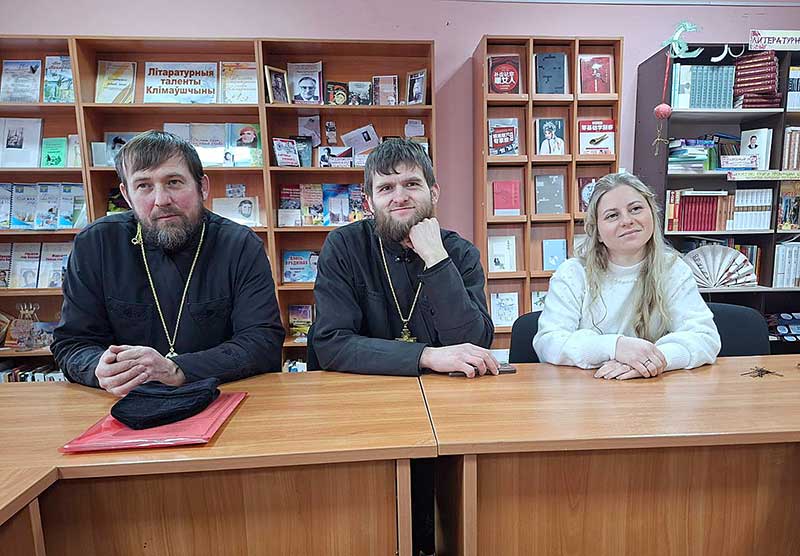 С членами православного клуба, прихожанами и ветеранами педагогического труда встретились исполняющий обязанности настоятеля храма Святого Архангела Михаила г. Климовичи отец Николай Вечорко и клирик Спасо-Преображенского собора г. Могилева отец Андрей Шаварин с матушкой Ксенией. У каждого желающего была возможность задать священнослужителям самые сокровенные вопросы.