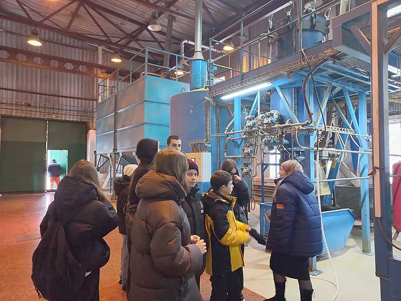 Запоминающейся для ребят была экскурсия по производственным цехам, во время которой молодые люди задавали вопросы об этапах производства. Заместитель главного инженера Ирина Малашенко рассказала, какие критерии качества предъявляются сырью и готовой продукции.