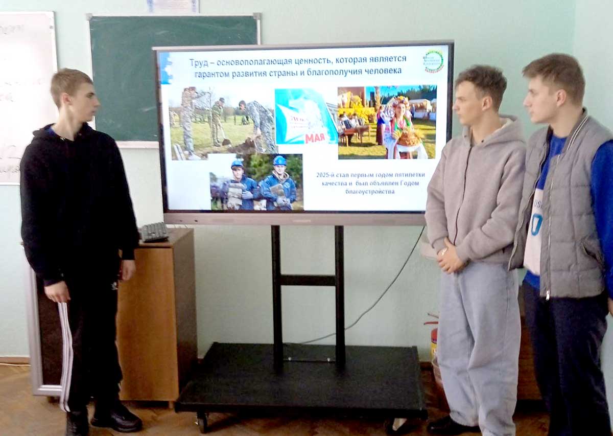 Молодые люди говорили о патриотизме и роли молодежи в современной жизни. Сегодня мало хорошо учиться. Нужно с уважением относиться к своему прошлому, знать историю, заботиться о своей малой родине. Патриотизм проявляется в ежедневном добросовестном труде граждан страны.