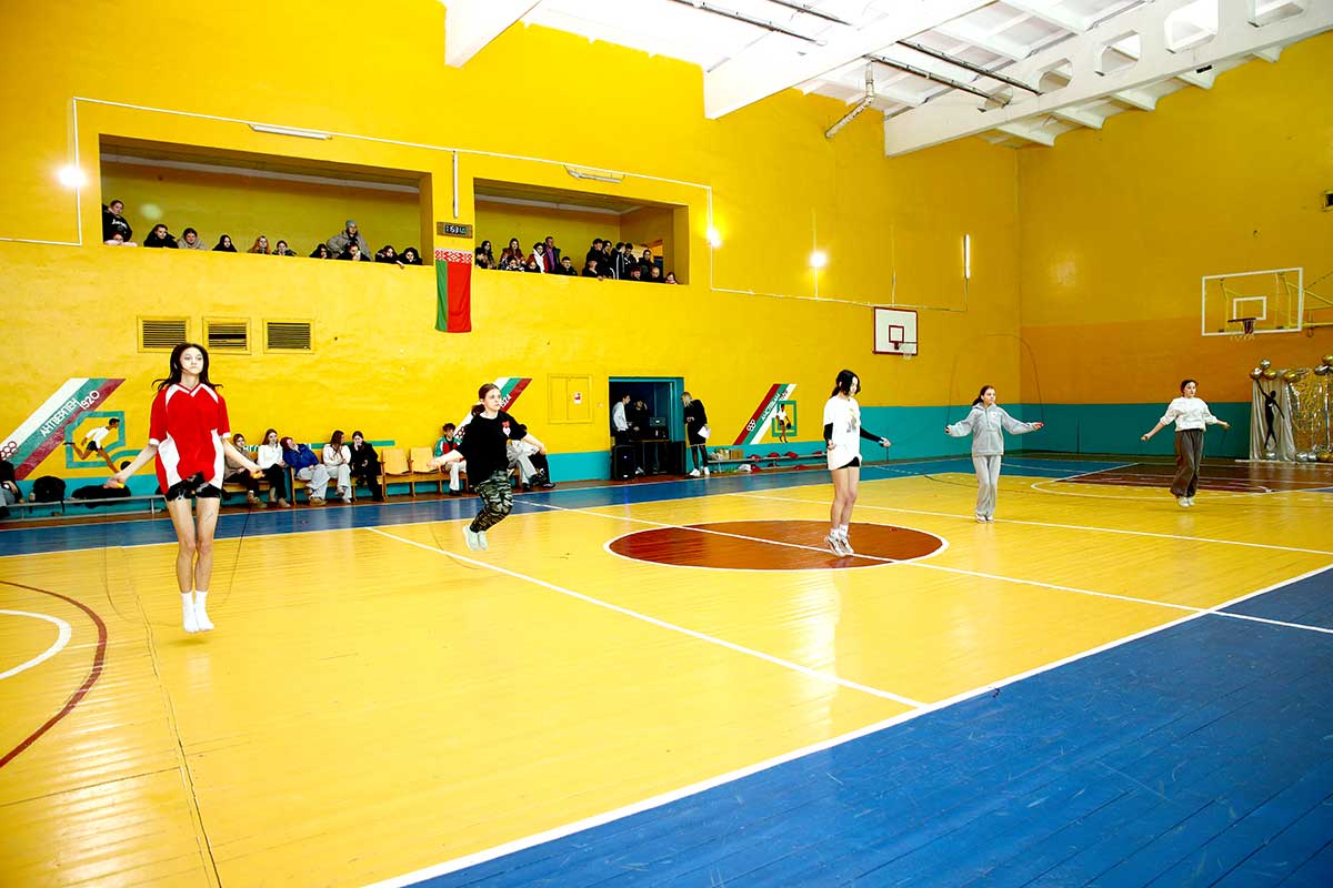 — Состязание мы посвятили Дню женщин, — рассказывает организатор праздника, преподаватель физической культуры и здоровья учреждения Марина Какашинская. — Участницы соревновались в нескольких видах: прыжки через скакалку, подъем туловища из положения лежа, вращение обруча, сгибание и разгибание рук в упоре лежа о скамейку, гимнастический комплекс.