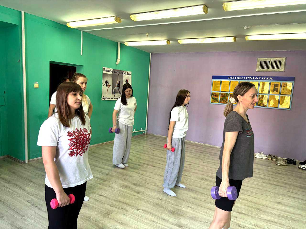 В фитнес-зарядке участвовали молодые специалисты, работающие на комбинате хлебопродуктов, ликеро-водочном заводе, в Климовичском лесхозе.