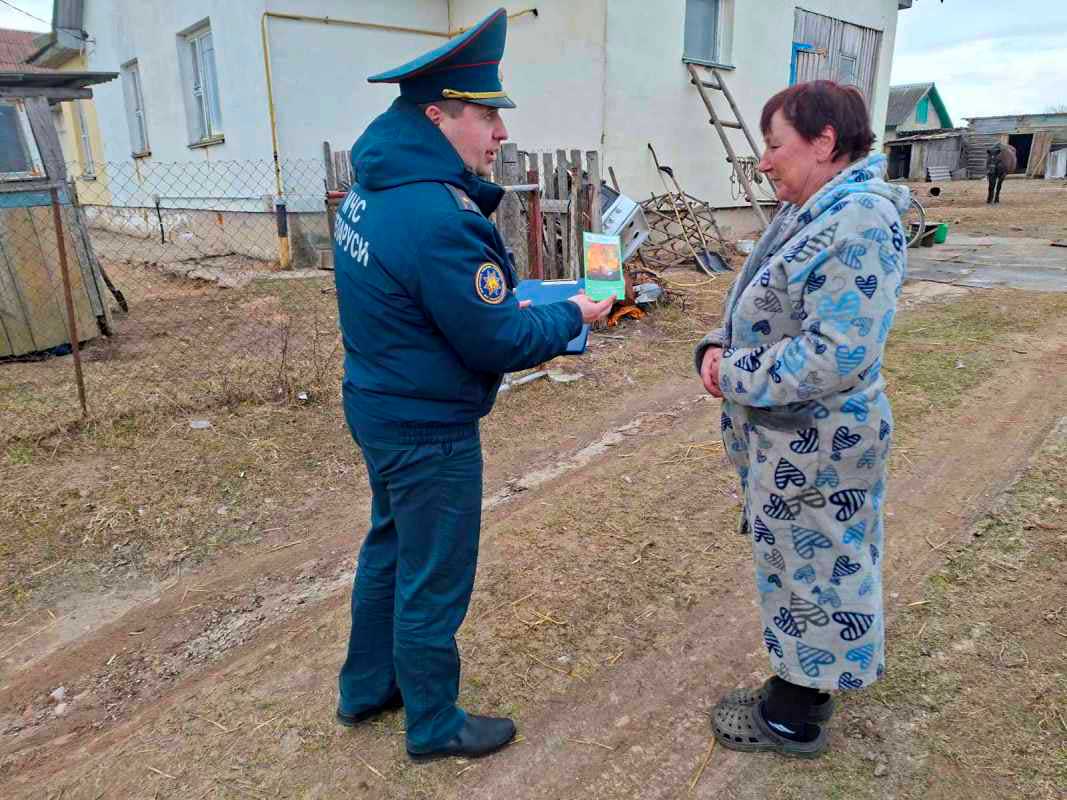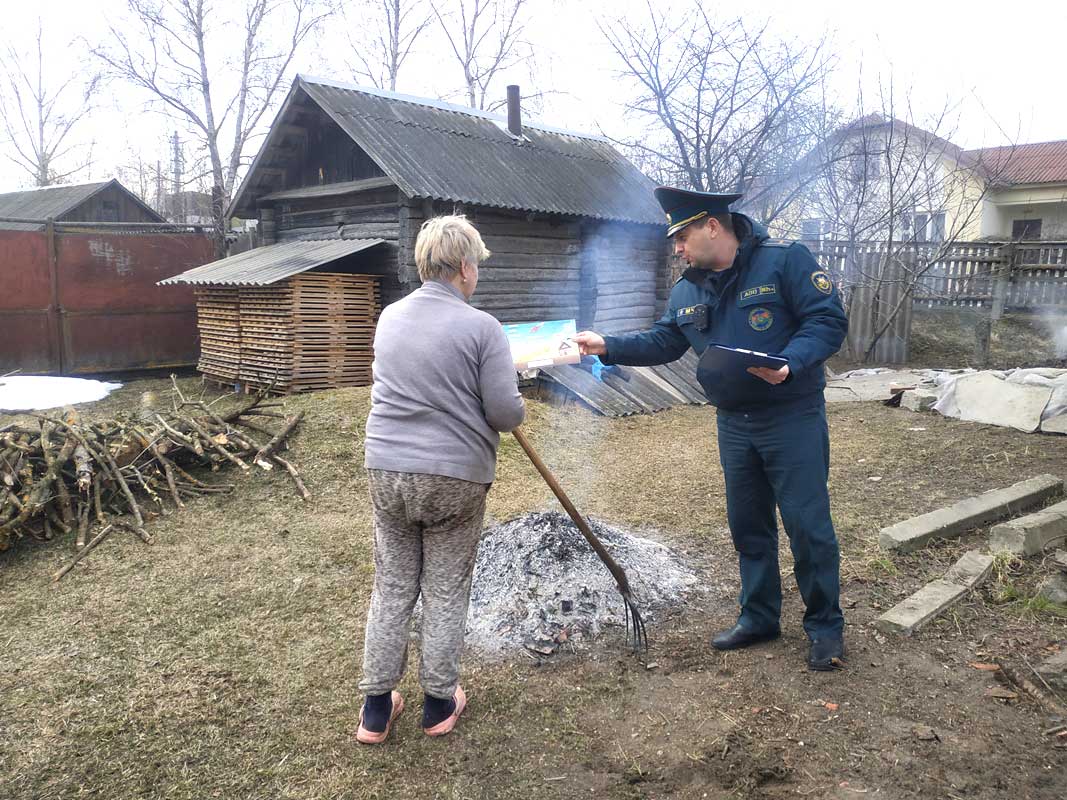 В ходе бесед с местными жителями спасатели разъясняют меры безопасности при наведении порядка на придомовых территориях, а также напоминают об административной ответственности за выжигание сухой растительности и трав на корню.