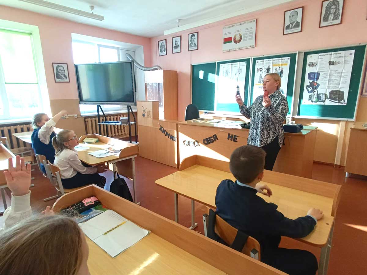 В Климовичской районной государственной гимназии педагог социальный Марина Карпенкова у учащихся 5 классов провела урок по основам безопасности жизнедеятельности.