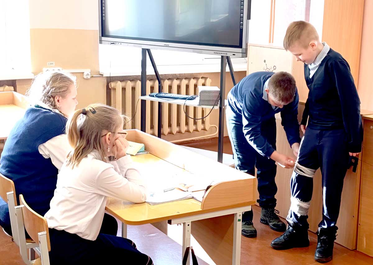 Современный подход к преподаванию строится на принципе: предвидеть опасность — по возможности ее избегать — при необходимости действовать. Это значит, что теория на таких уроках неразрывно связана с практикой. Во время занятия ребята изучали причины получения травм, решали ситуативные задачи, выполняли практические задания по оказанию первой медицинской помощи.