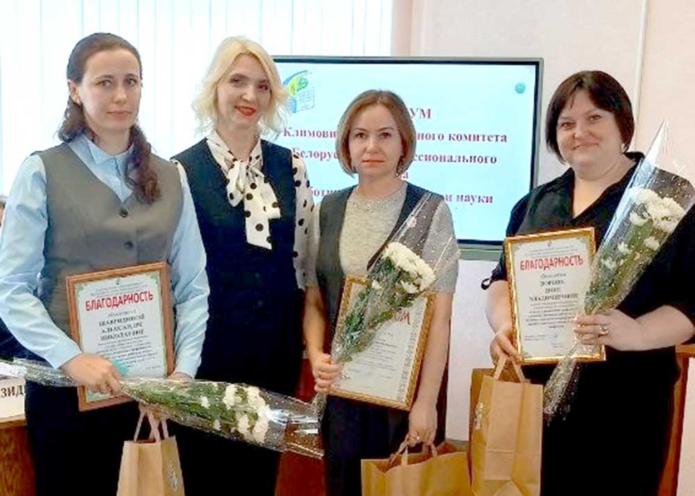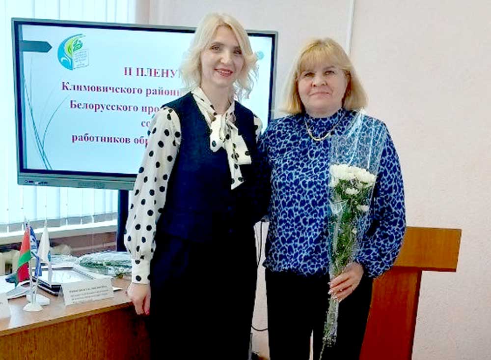 Благодарностью райкома профсоюза за вклад в укрепление профсоюзного движения наградили учителя средней школы № 1 г. Климовичи Дину Ворону и руководителя физического воспитания детского сада № 7 «Теремок» Александру Шавридину.