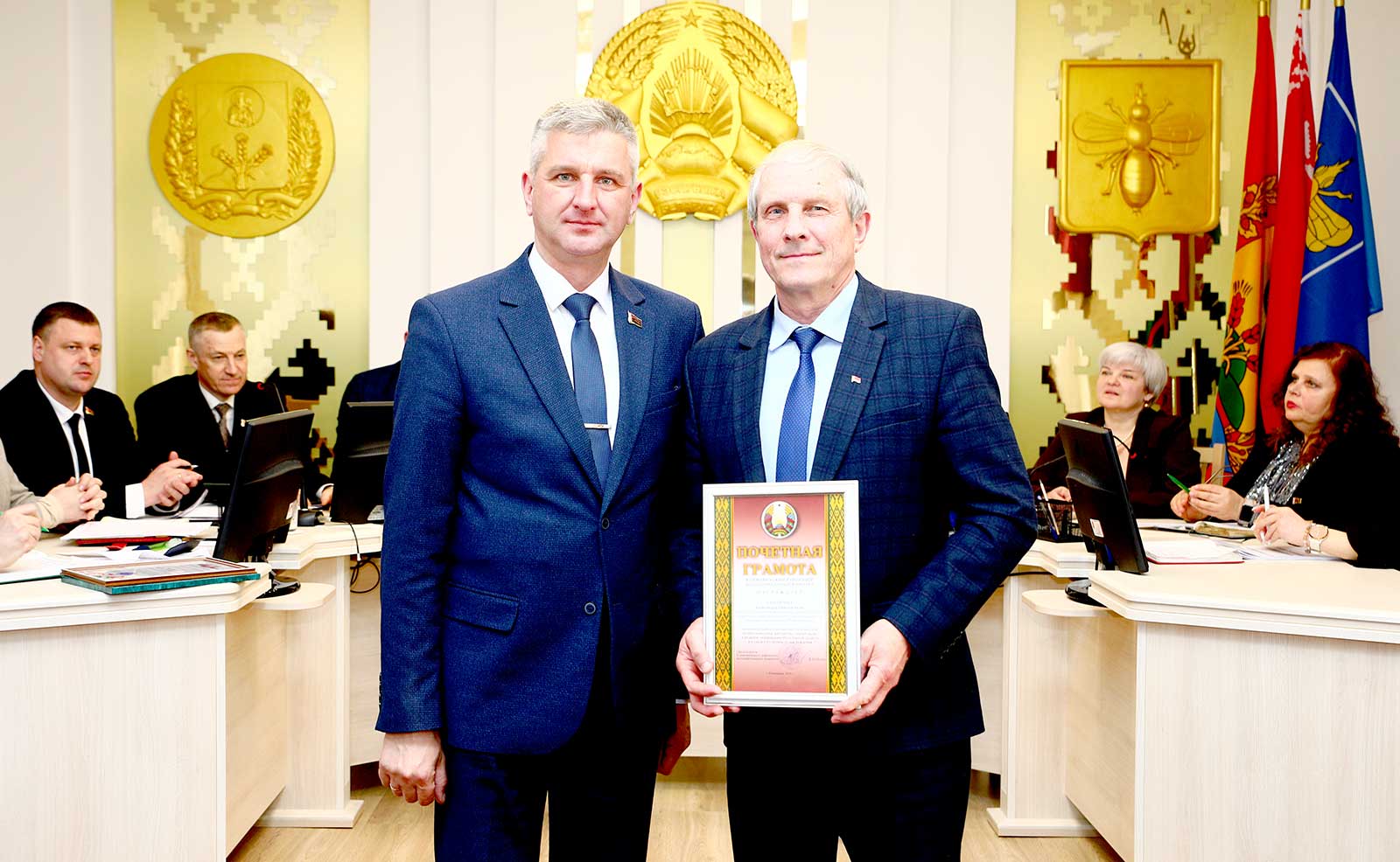 Почетной грамотой райисполкома награжден директор ПУ «Климовичигаз» Александр Столяров. Благодарственные письма райисполкома вручены начальнику отдела по образованию райисполкома Петру Шашкову и учителю физической культуры и здоровья Барсуковской базовой школы Игорю Стародубу.