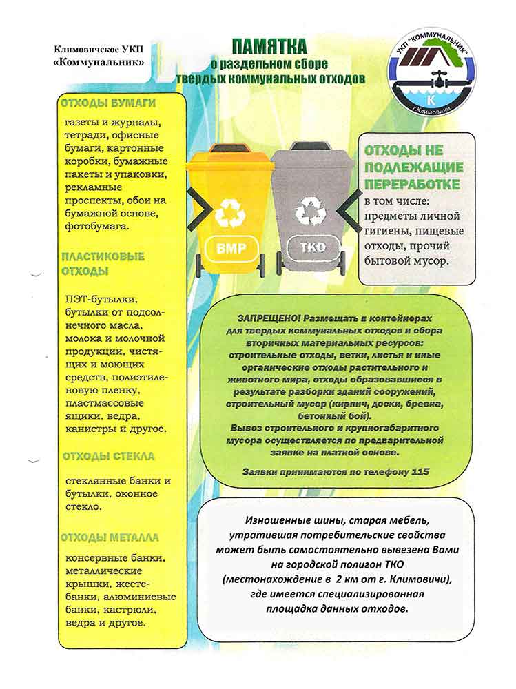 В День экологических знаний важно усвоить: система обращения с отходами в Климовичском районе охватывает все виды мусора — от обычного до крупногабаритного и вторсырья. Но даже самая продуманная система работает только тогда, когда каждый житель знает правила и следует им. Чистый район начинается с каждого из нас. И сегодня — лучший день, чтобы начать действовать осознанно.