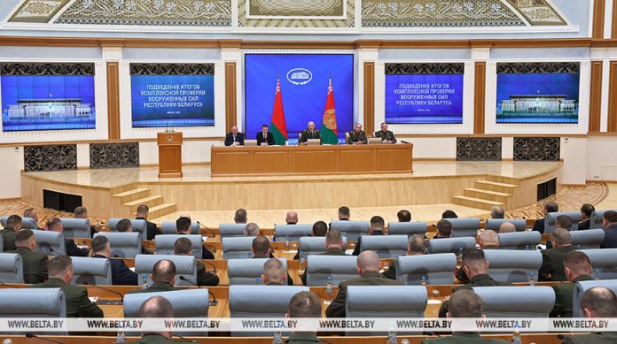 Президент Беларуси Александр Лукашенко собрал совещание для подведения итогов комплексной проверки Вооруженных Сил. Участниками совещания у главы государства стали около 300 человек, в числе которых — командиры соединений, привлекавшихся к проверке.