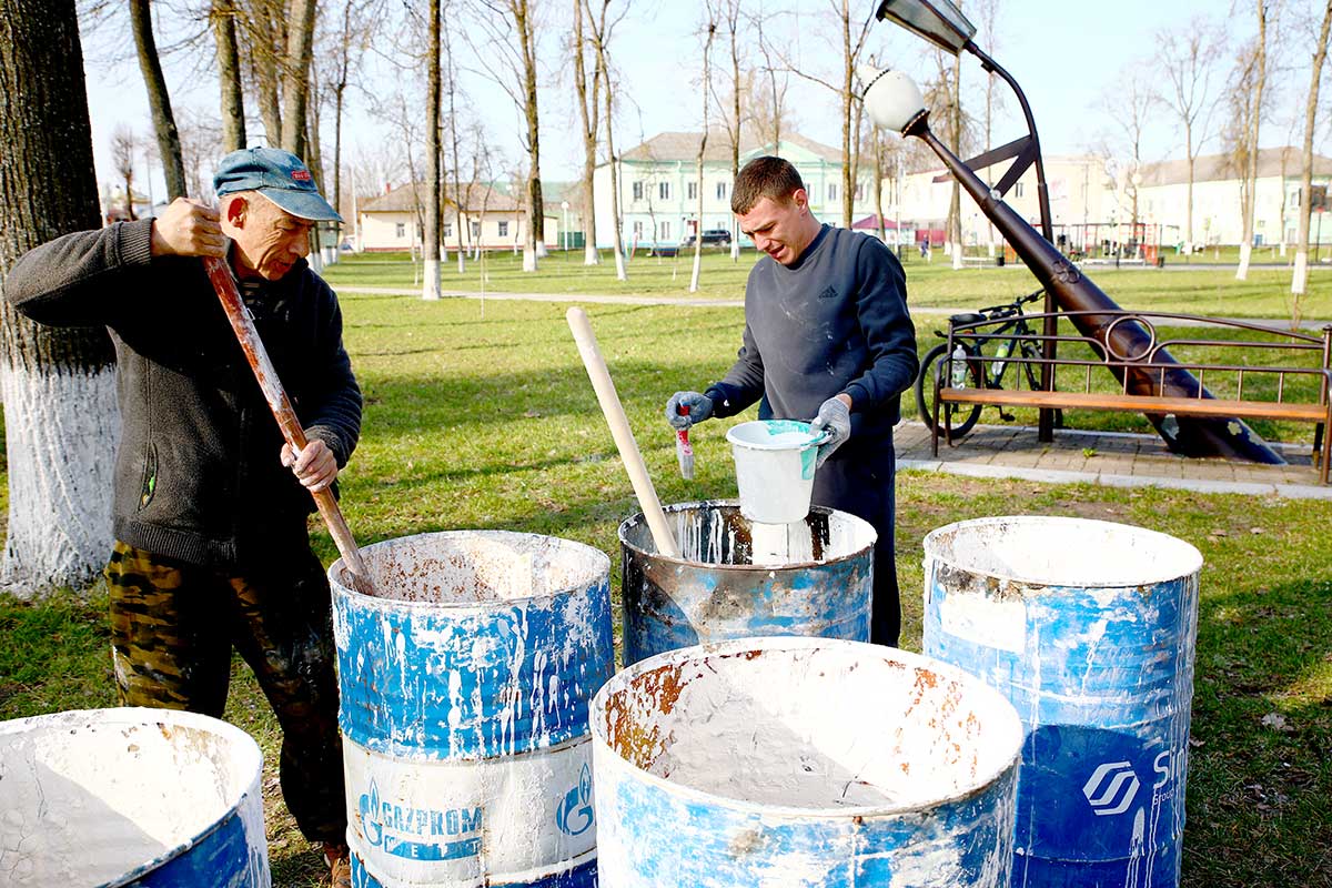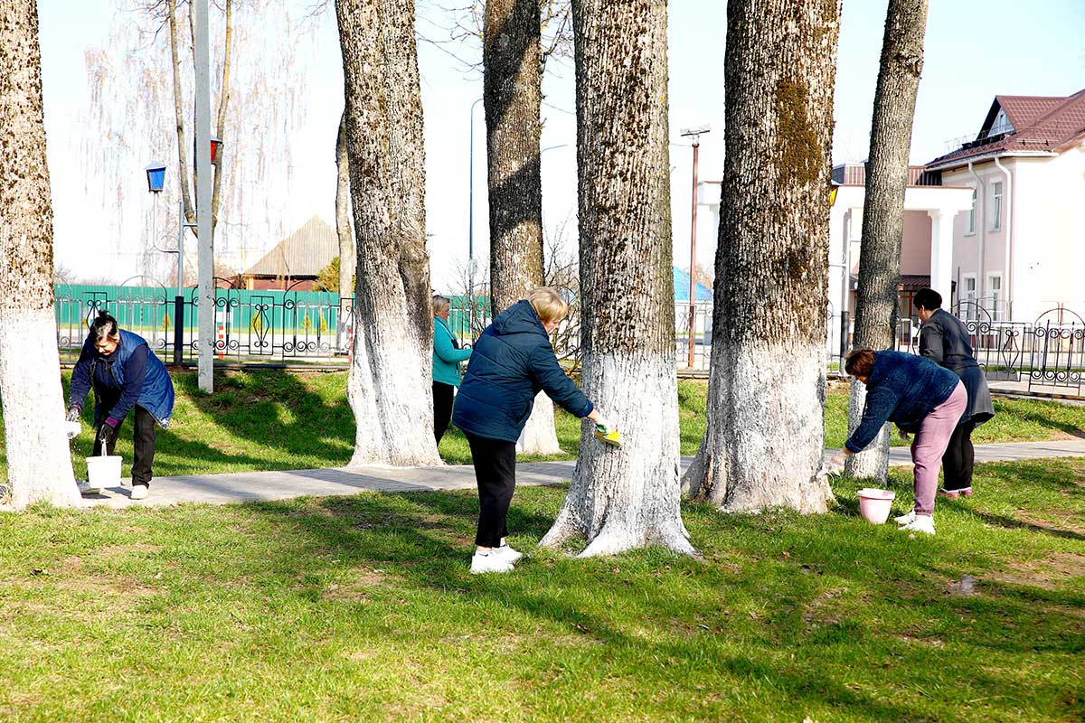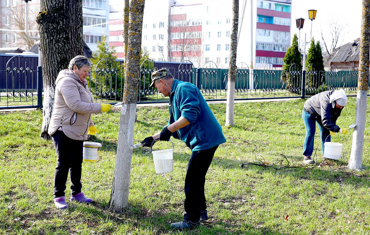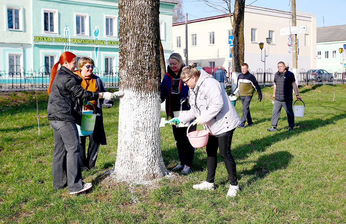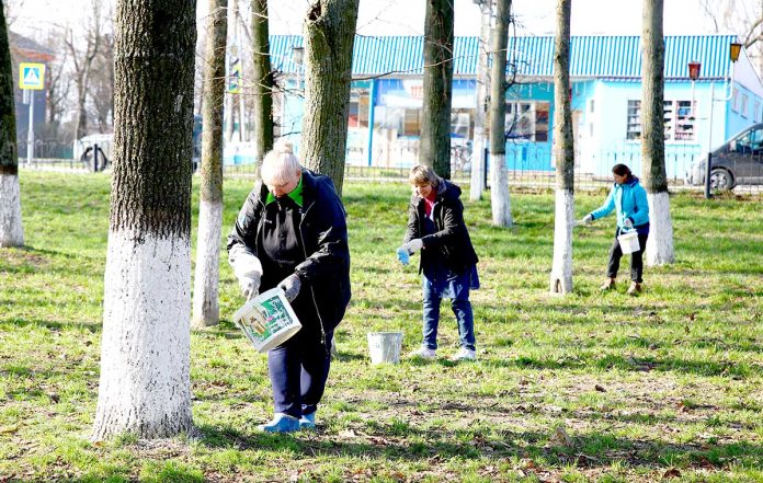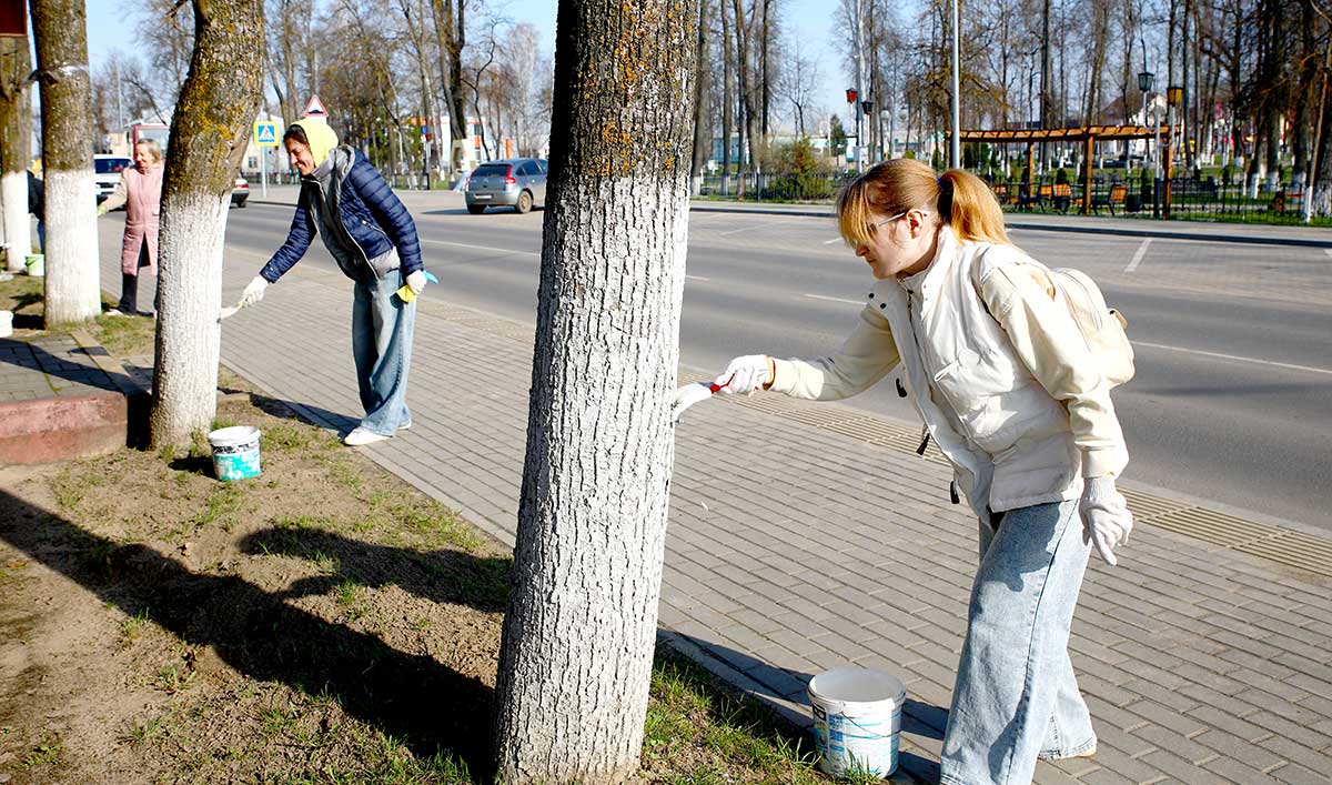 Участники акции занимались побелкой деревьев в городском парке, скверах, а также вдоль придорожных полос.